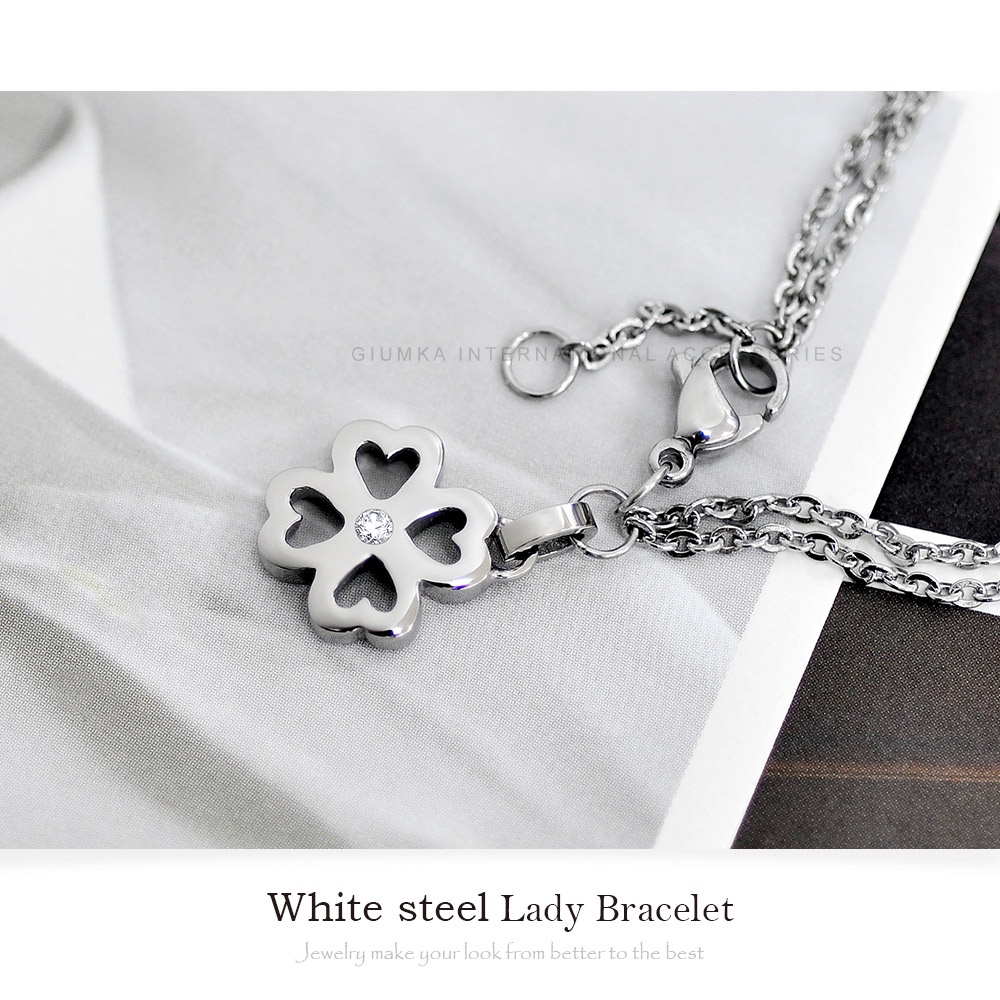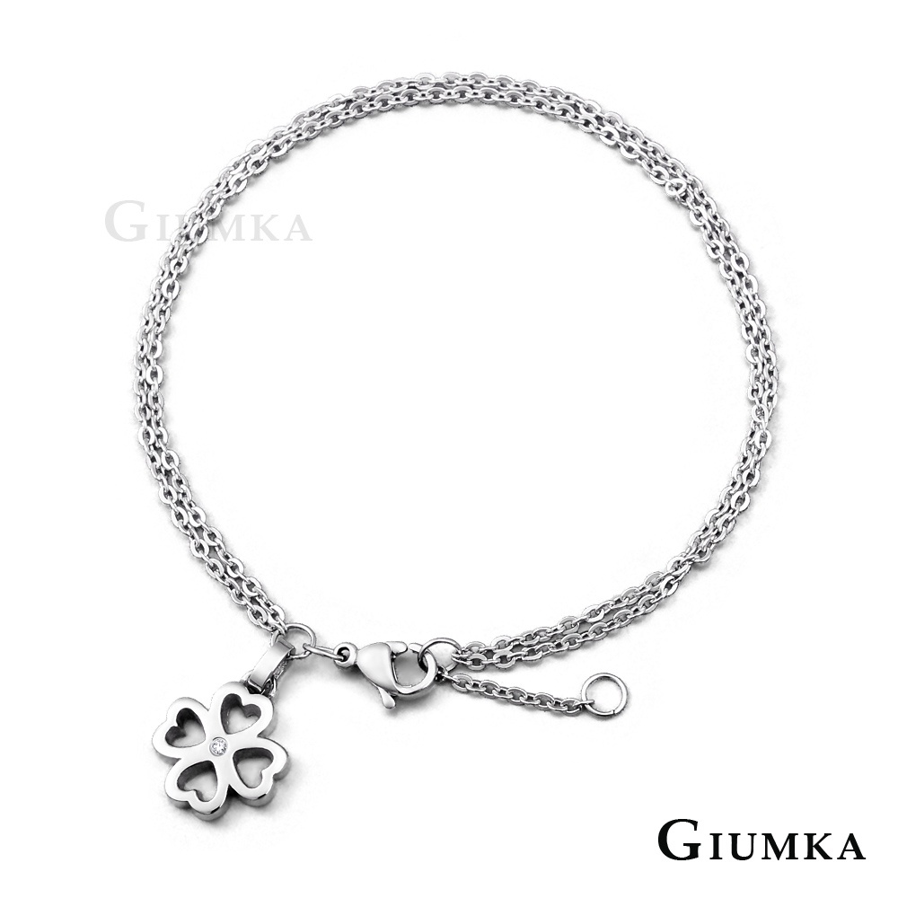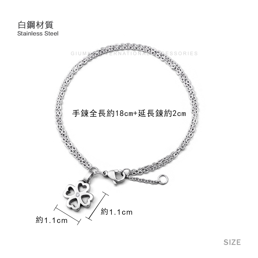 GIUMKA鋼手鍊白鋼雙鍊層次手鏈女四葉愛心幸運草MB00587 畢業禮物 交換禮物
