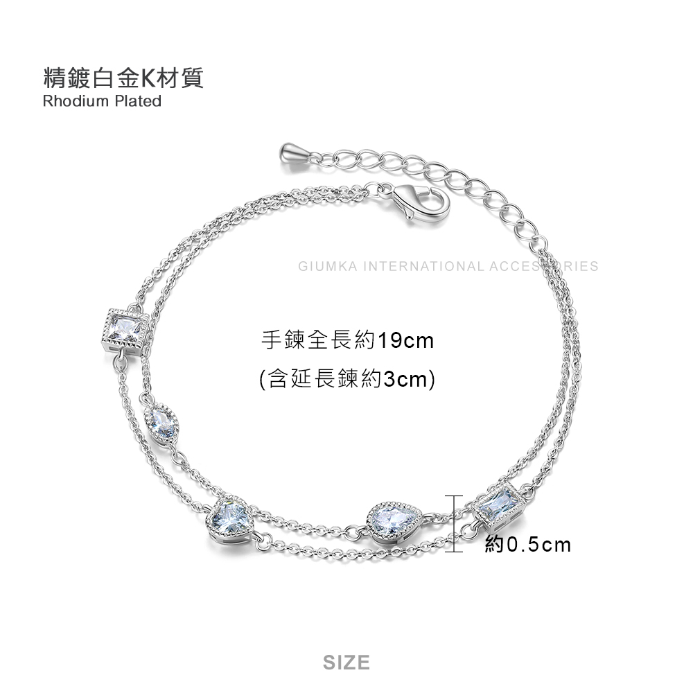 GIUMKA-雙層手鍊-愛情寓意-愛心-水滴-方塊