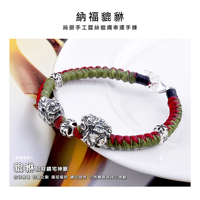 GIUMKA編織手繩蠶絲蠟繩925銀納福貔貅手鏈男中性款 情人節開運生日禮物推薦 MHS05012