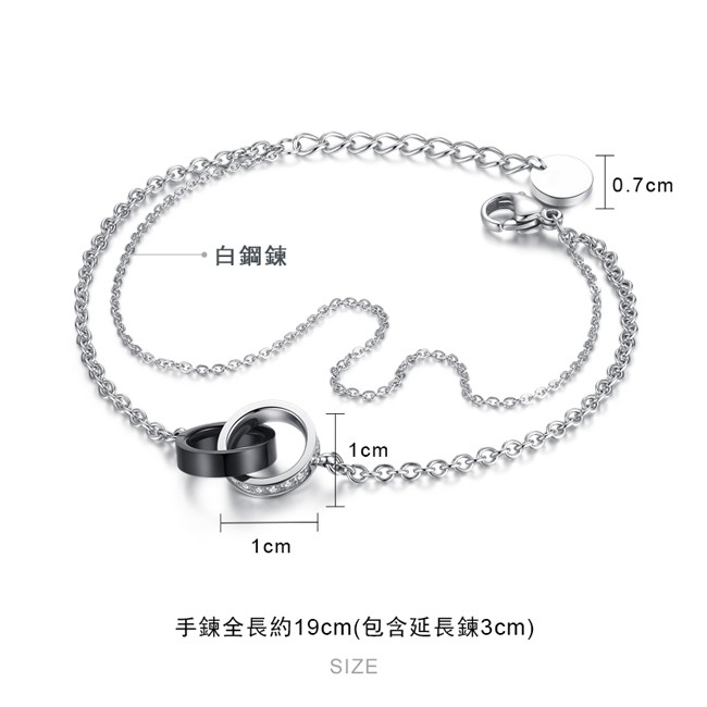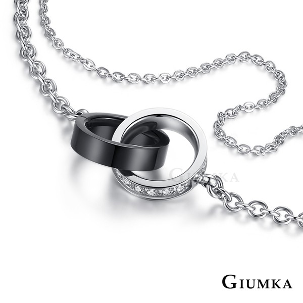 GIUMKA女生手鍊 白鋼手鏈 雙環雙圈 單環滿鑽 黑色 依鍊系列 MH06022