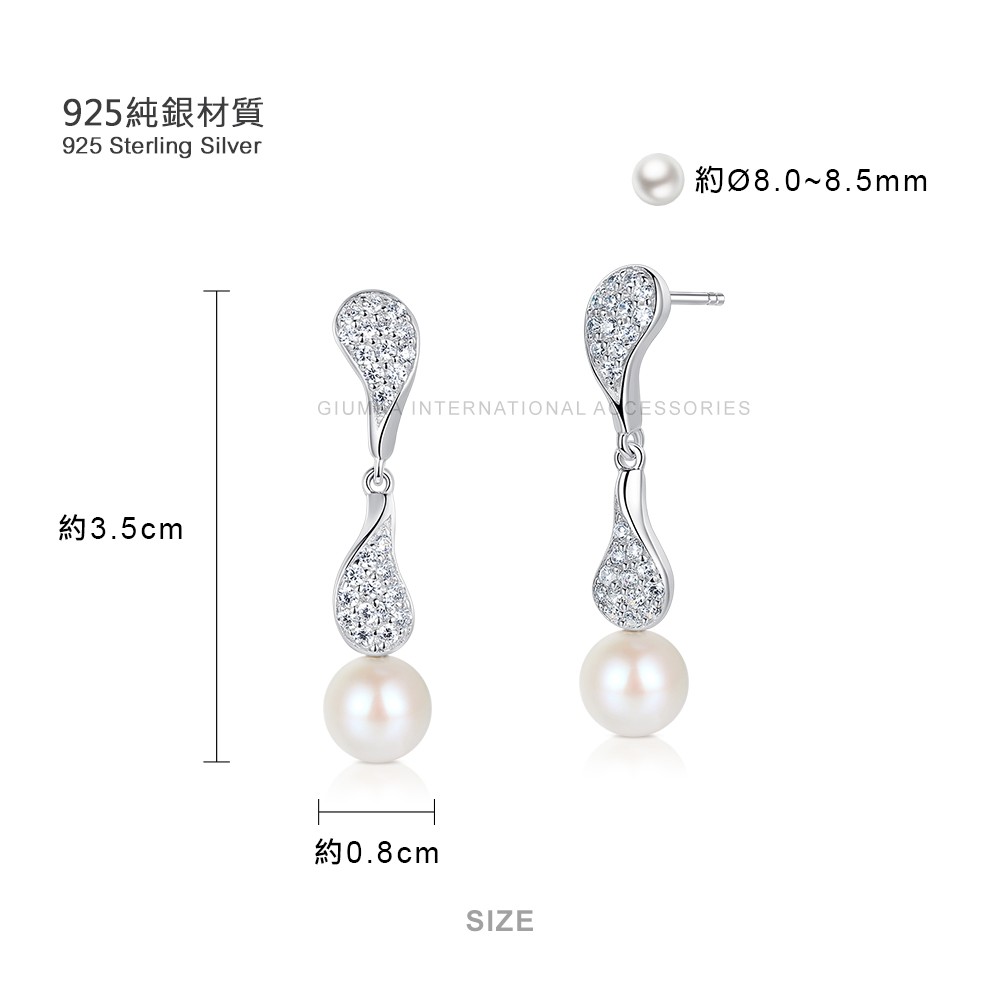 GIUMKA天然珍珠925純銀耳環 完美情人MFS020019名媛淑女款