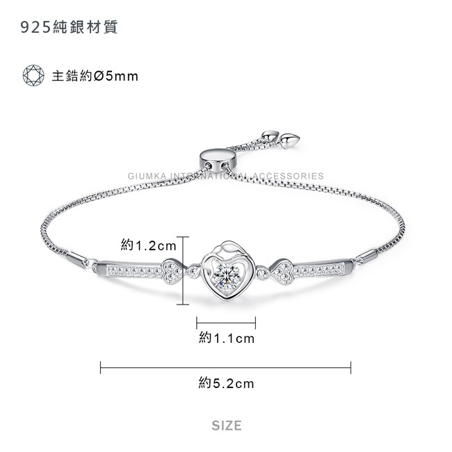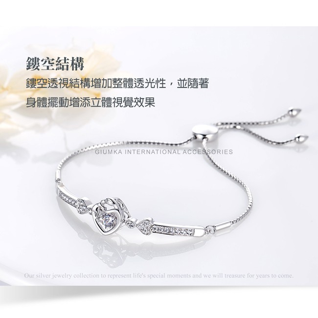 GIUMKA.925純銀手鍊.可調式.無盡的愛.愛心.跳舞石.MHS08006