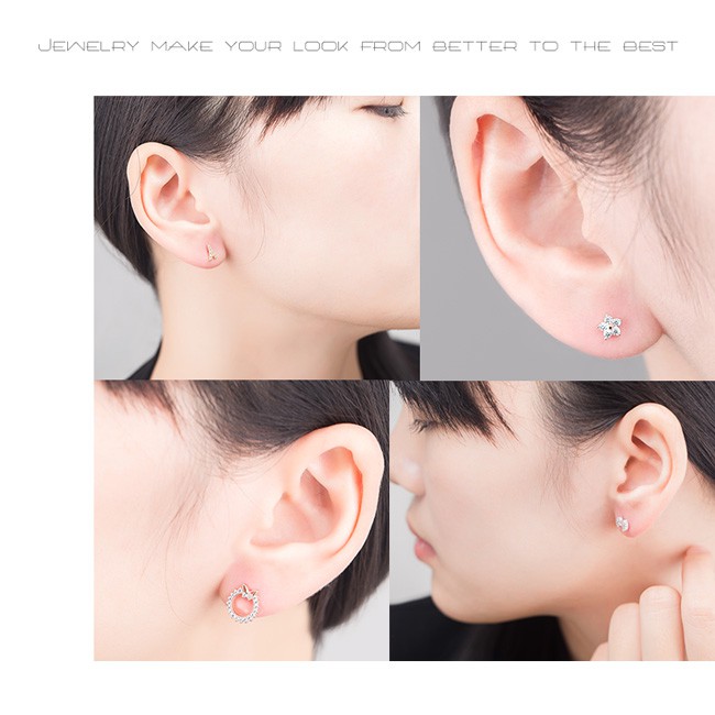 Majalica純銀耳環迷你小愛心925純銀貼耳耳釘 玫金色款 PF5017