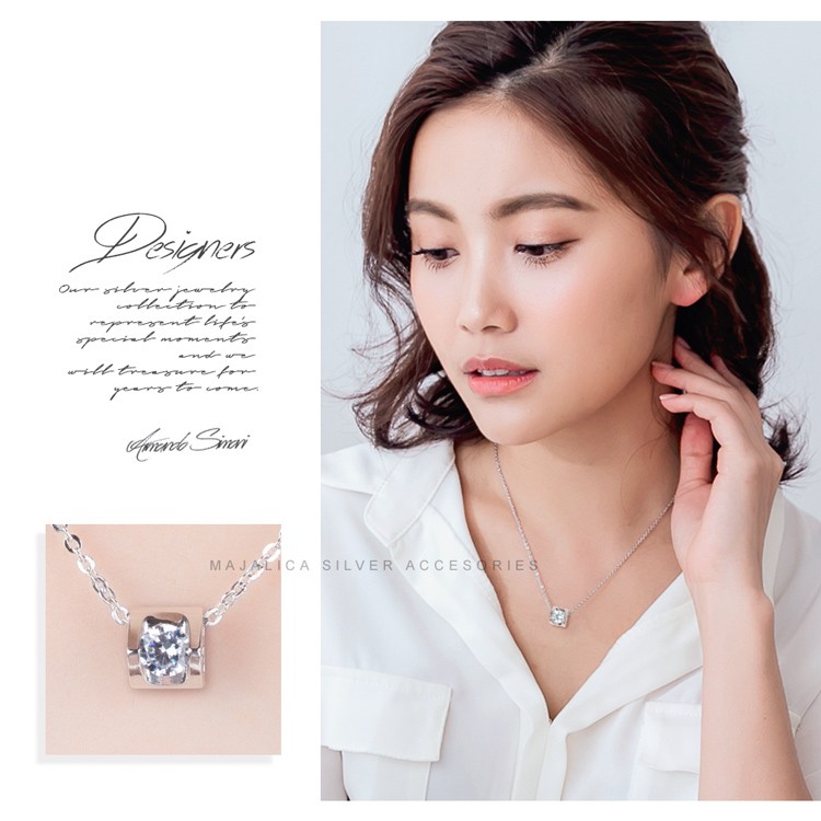 Majalica純銀項鍊925純銀墜鍊 擬真鑽S925女短鍊 獨家寵愛 0.5克拉 PN6037