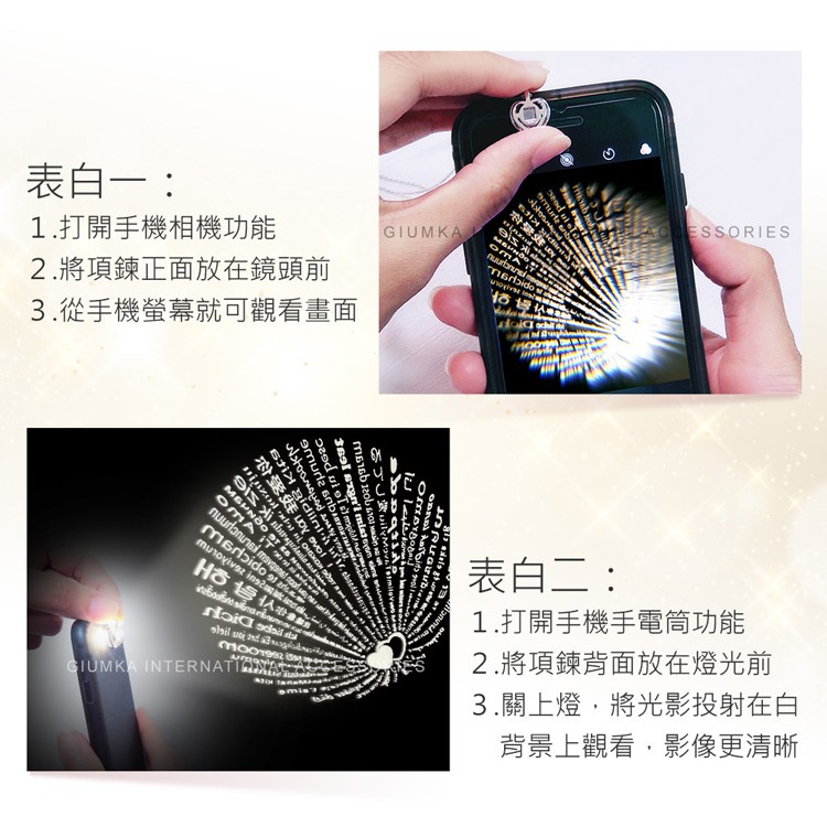 GIUMKA.希望之愛.投影項鍊.925純銀.100種語言.我愛你.客製刻字.單個價格
