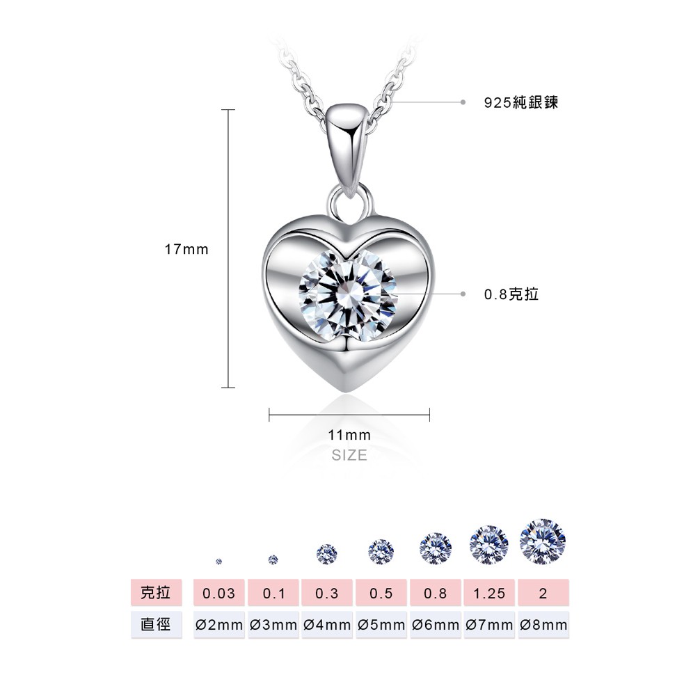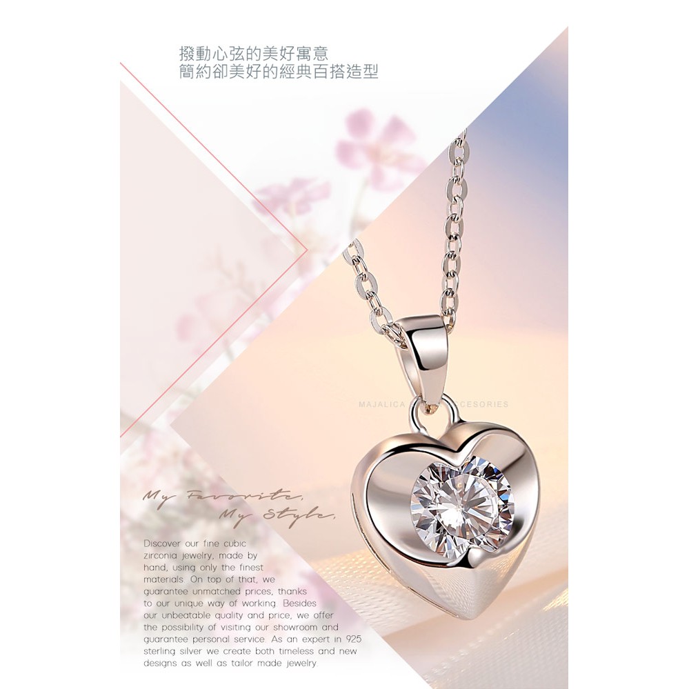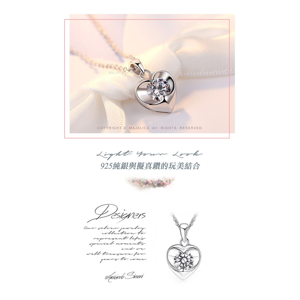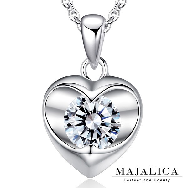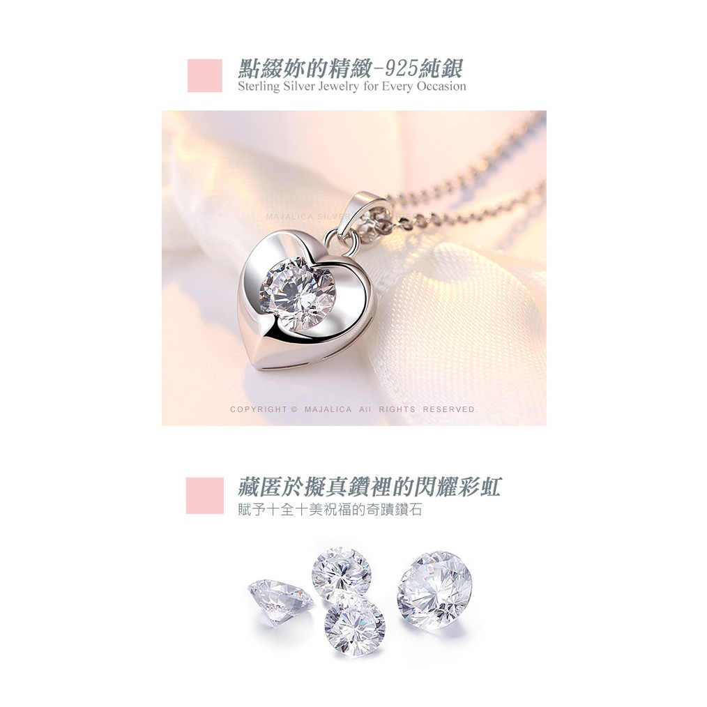 Majalica純銀項鍊925純銀墜鍊 擬真鑽S925女短鍊 小愛心 0.8克拉 PN6033
