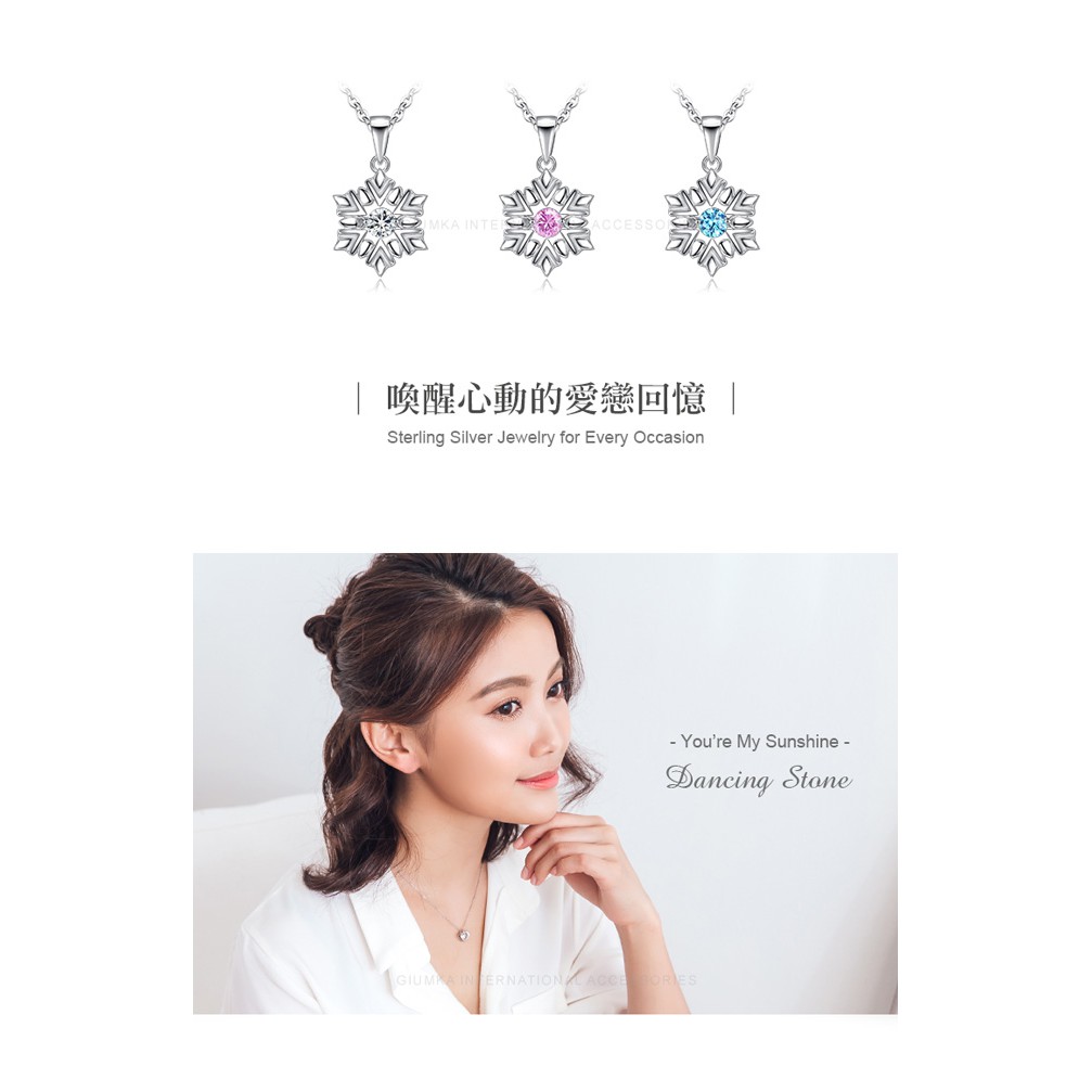 贈刻字GIUMKA 925純銀項鍊 夢幻雪花 心動時分跳舞石系列 純銀項鏈 聖誕禮物 粉鋯款 MNS07035