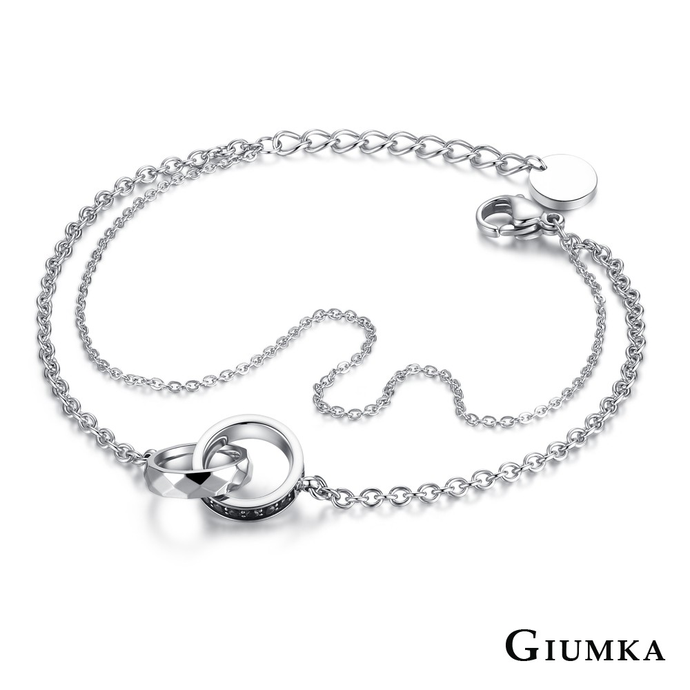 GIUMKA女生手鍊 白鋼手鏈 雙環雙圈 滿鑽 多切面 銀色 依鍊系列 MH06029