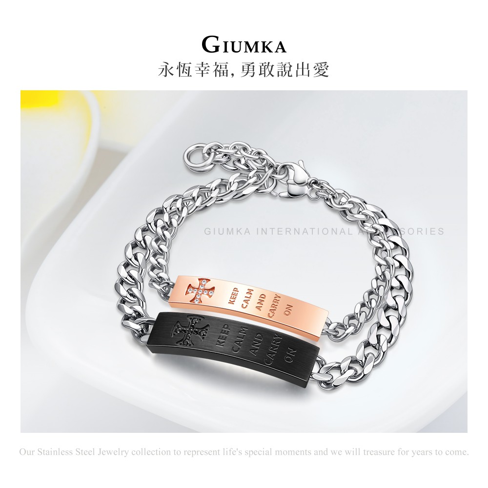 GIUMKA情侶手鍊刻字紀念白鋼手鏈MH20026勇往直前男女情人手鍊 情人節禮物 單個價格