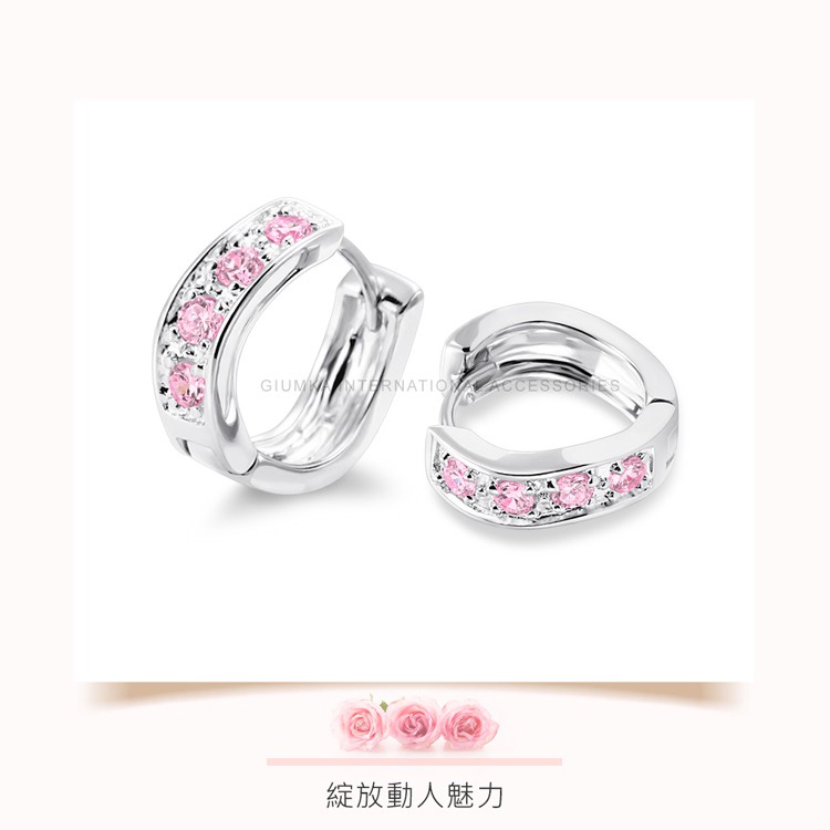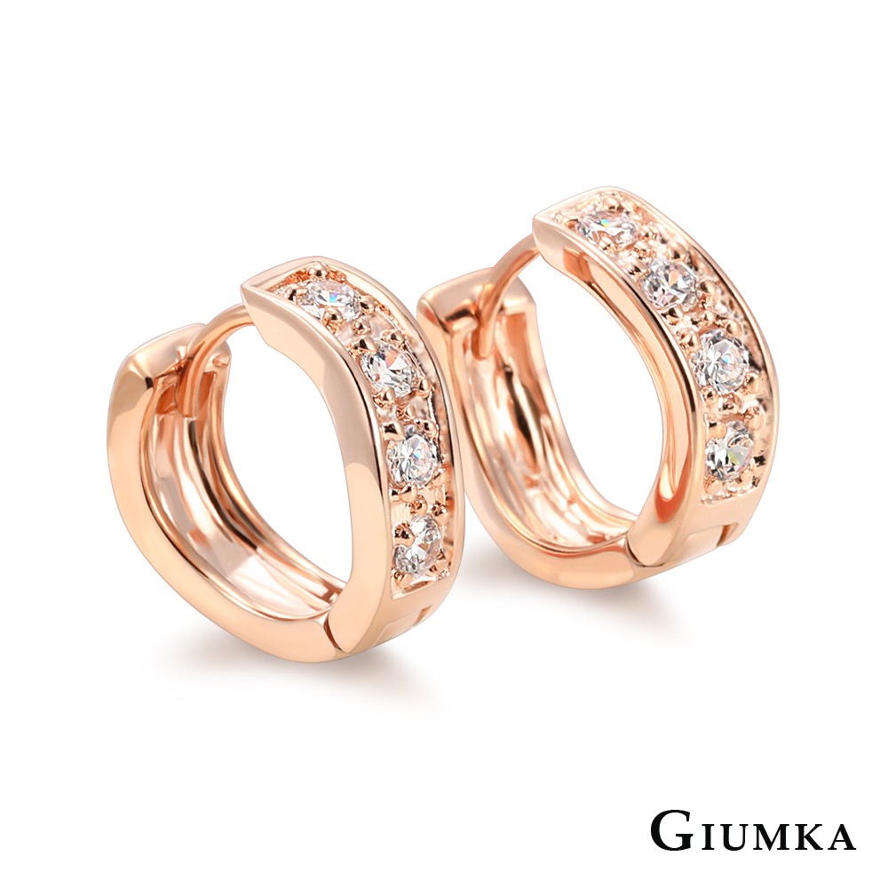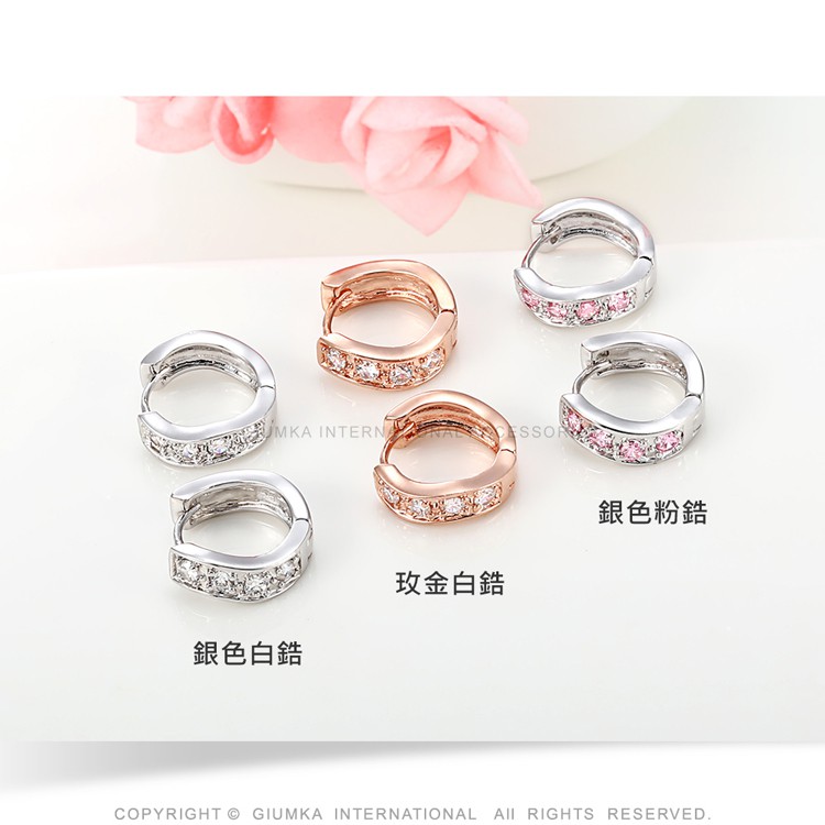 GIUMKA晶鑽韓版耳環女款圈式耳扣極簡易扣式玫金色白鋯款MF07013