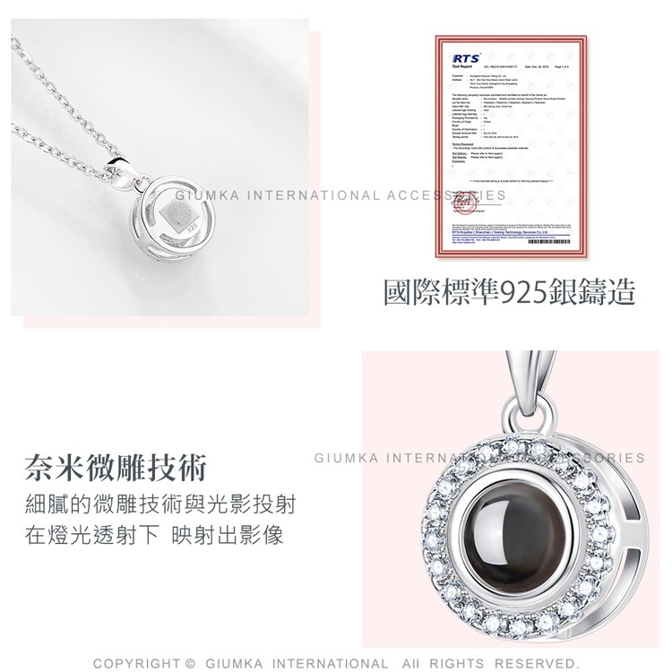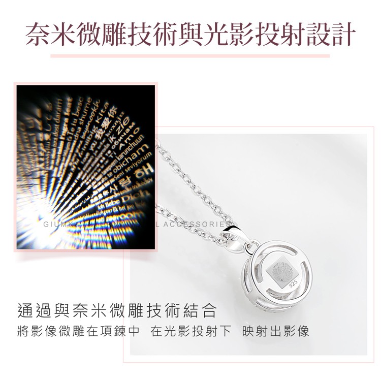 贈刻字.GIUMKA.圈愛.光投影項鍊. 925純銀.100種語言.我愛你.單個價格