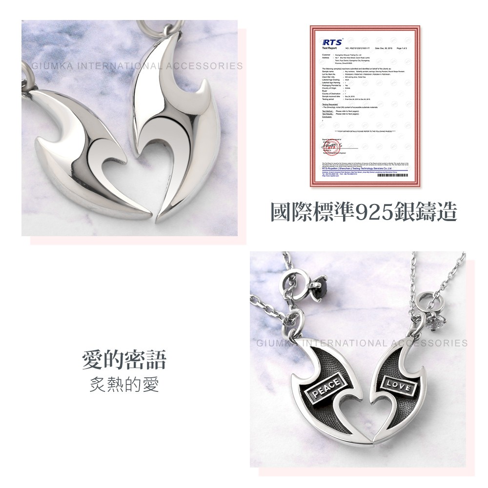 GIUMKA.純銀項鍊|情侶對鍊.熾熱的愛.單個價|客製刻字.MNS20009