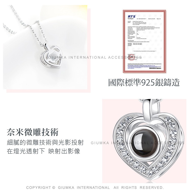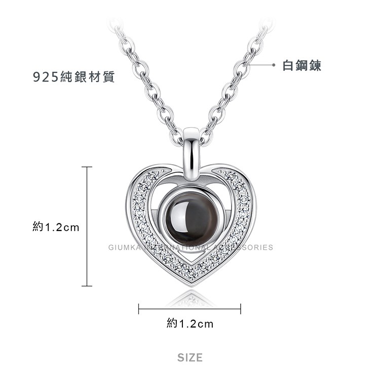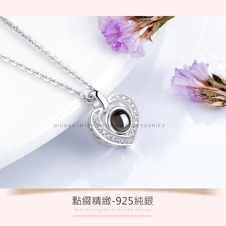 贈刻字.GIUMKA.愛的告白.愛心.光投影項鍊 .925純銀.100種語言.我愛你.單個價格