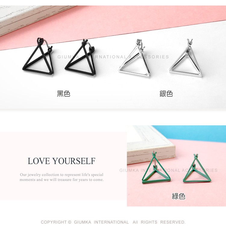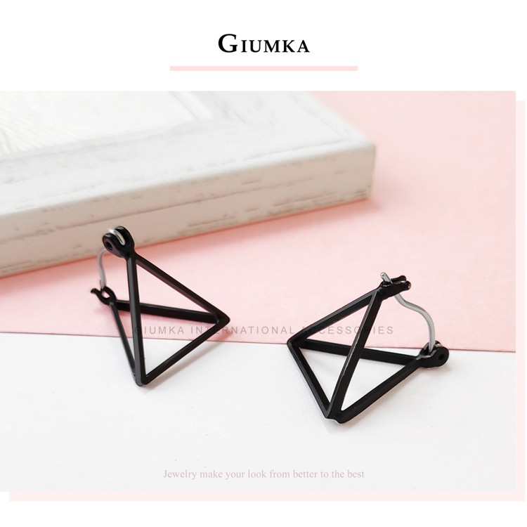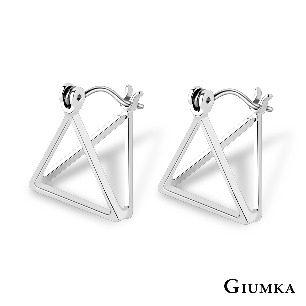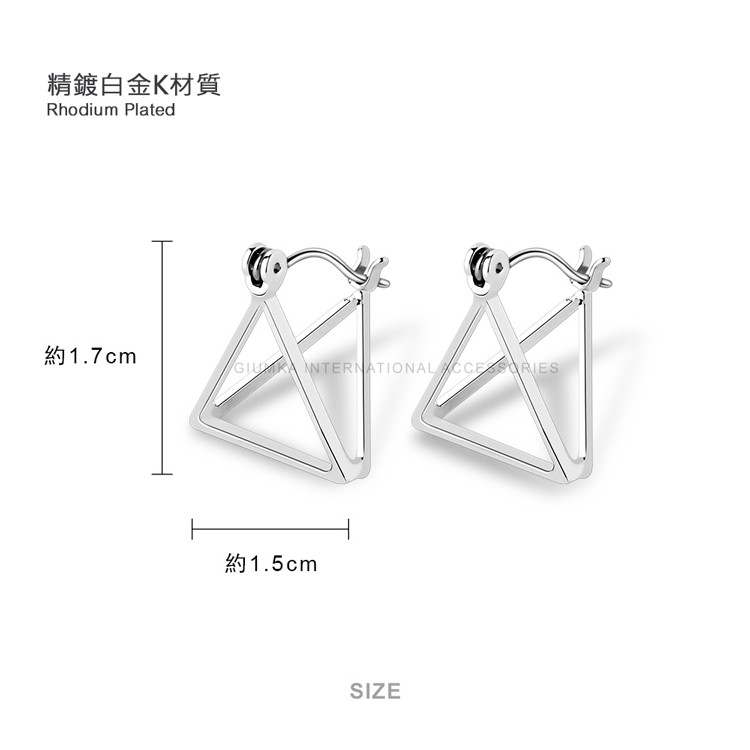 GIUMKA銀色耳環女針式耳扣極簡耳飾幾何立體三角形 精鍍正白K 單副價格MF07058