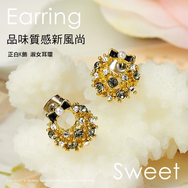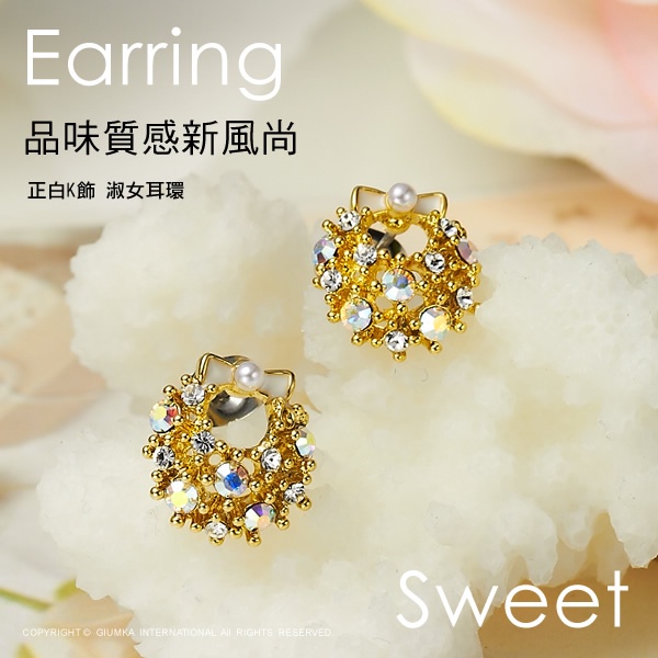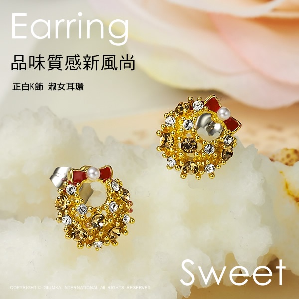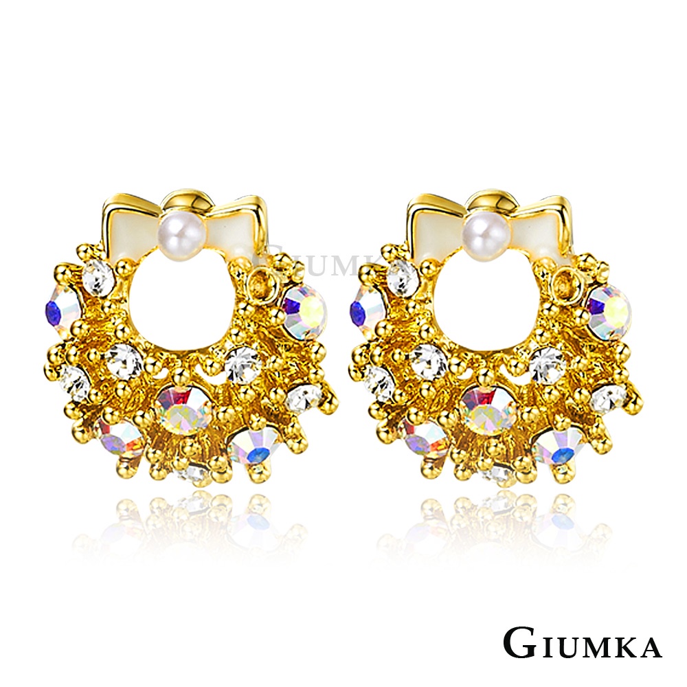 GIUMKA耳釘耳環 MF00563聖誕小花圈 精鍍黃K