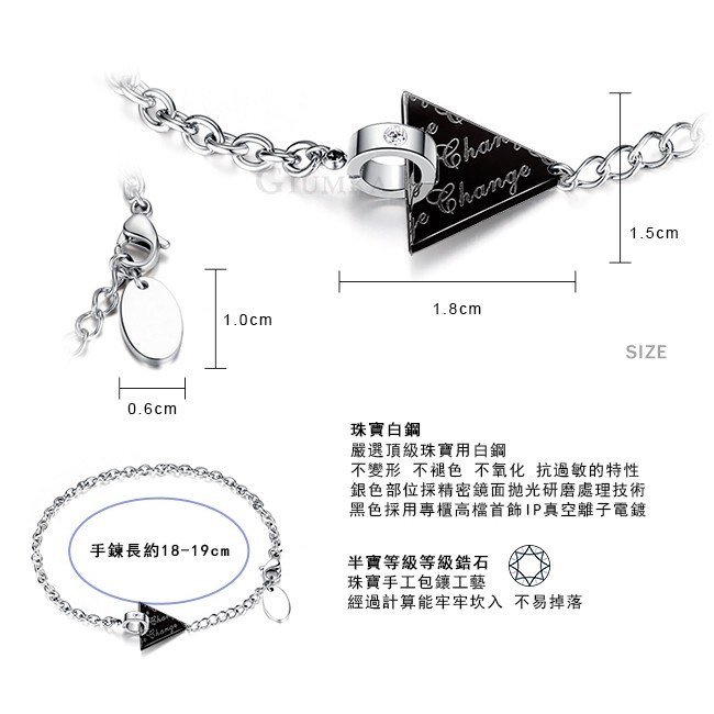 GIUMKA・鋼手鍊・客製刻字・女生手鏈・幾何三角・開始改變・黑色款・MH05039.生日紀念日.兒童節送禮推薦