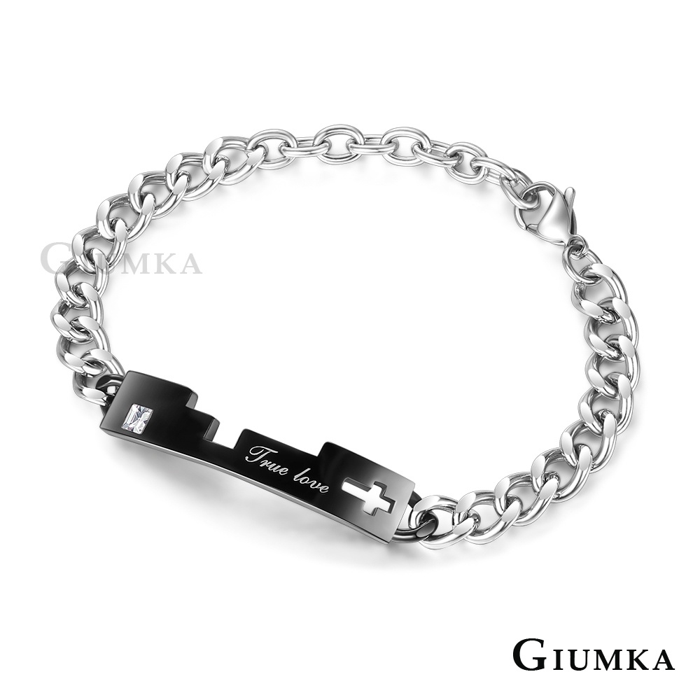 GIUMKA手鍊刻字 忠貞愛情 簍空十字架造型 白鋼情人手鏈 單個價格 MH08078