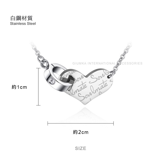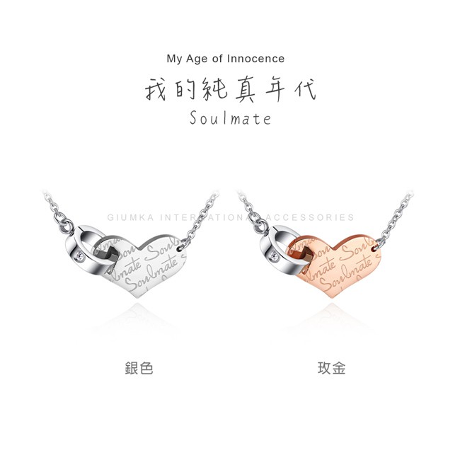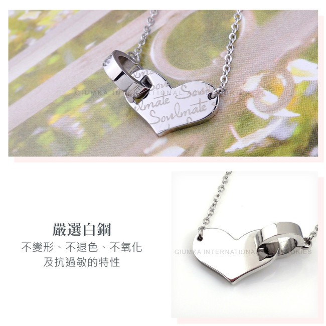 GIUMKA白鋼項鍊 Soulmate玫金色愛心MN05068 我的純真年代系列 單個價格