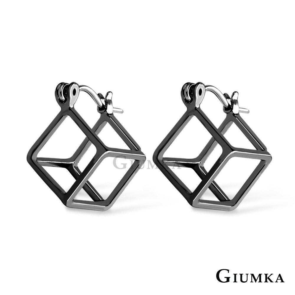 GIUMKA黑色耳環女耳扣針式極簡方框方格幾何韓風方形耳飾 精鍍正白K 單副價格MF07059