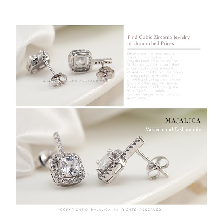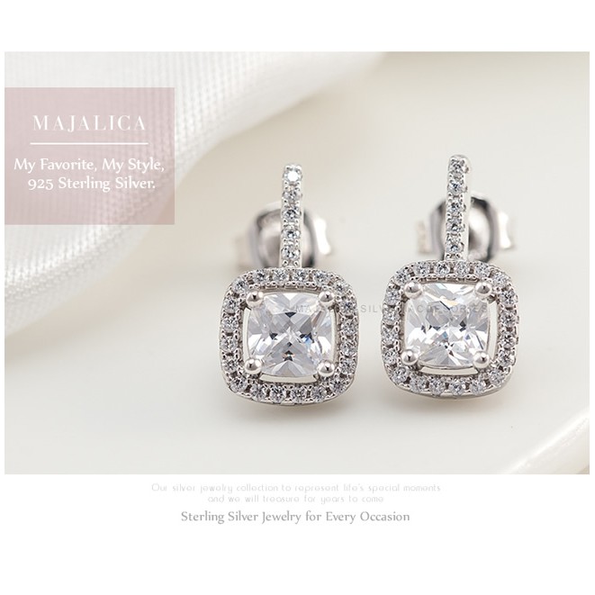 Majalica純銀耳環 密釘鑲永恆守護耳環925純銀 PF5010