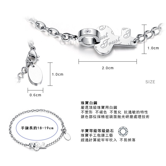 GIUMKA・白鋼手鍊・女生手鏈・鑰匙・生日紀念日・銀色款・MH05041.客製刻字