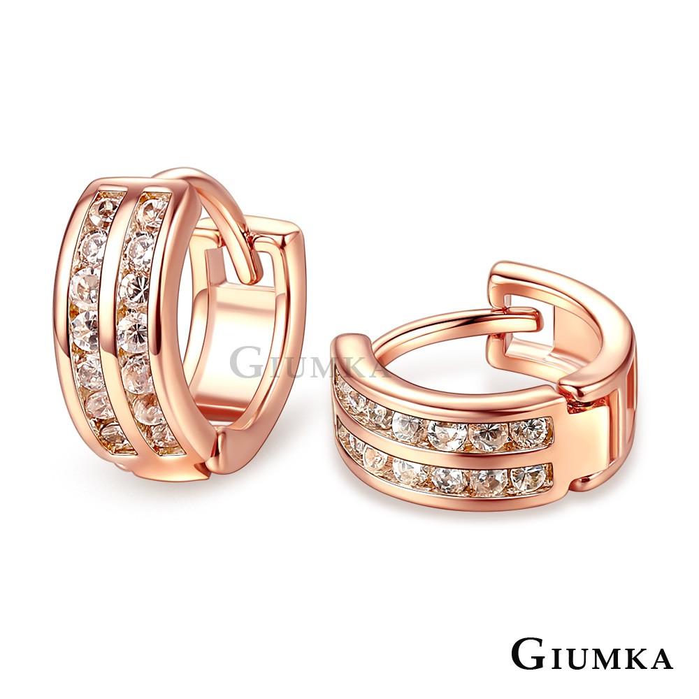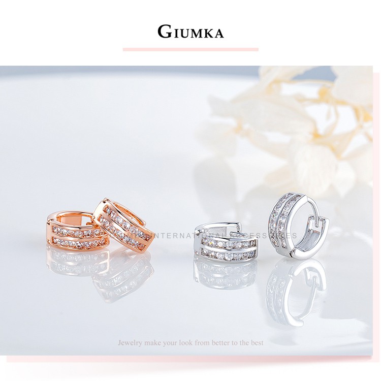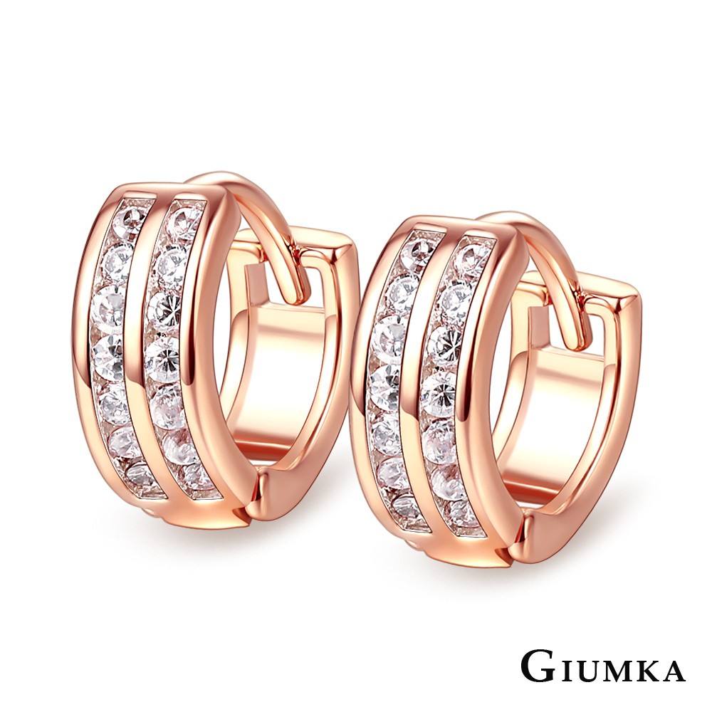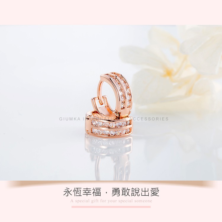 GIUMKA女耳環耳圈易扣耳扣簡約晶鑽韓版耳飾 玫金色白鋯款MF07020