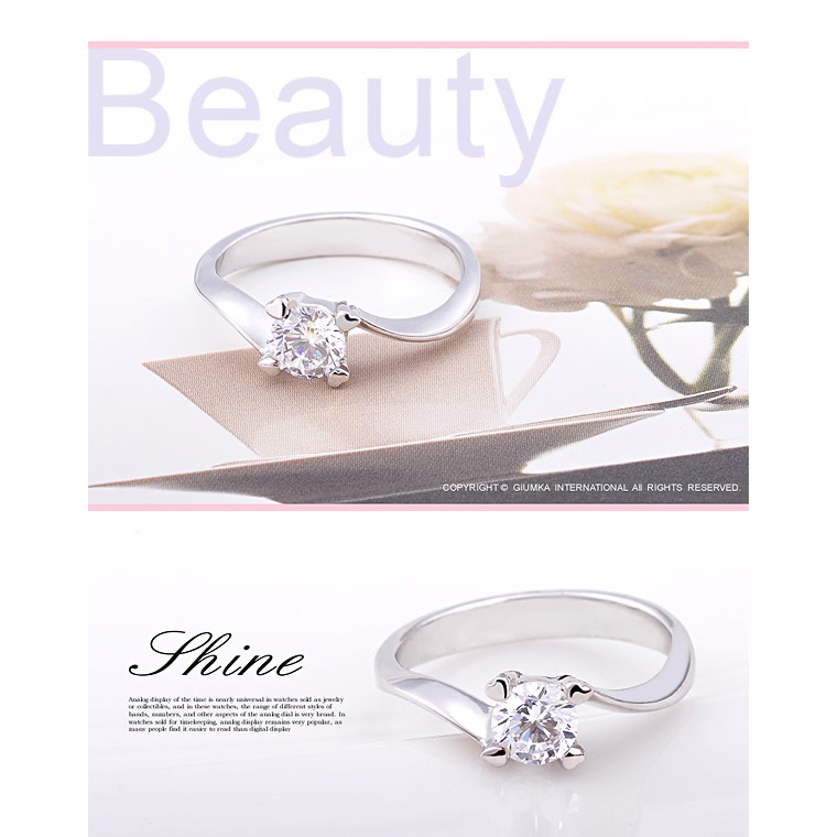 GIUMKA-單鑽戒指/四爪女戒-八心八箭-精鍍正白K-MR03034