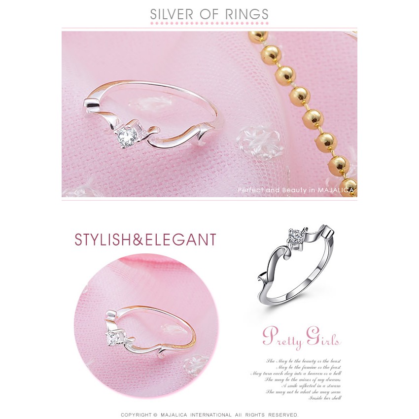 Majalica925純銀飾戒指女戒 閃耀之星 925純銀飾尾戒 聖誕交換禮物 PR013