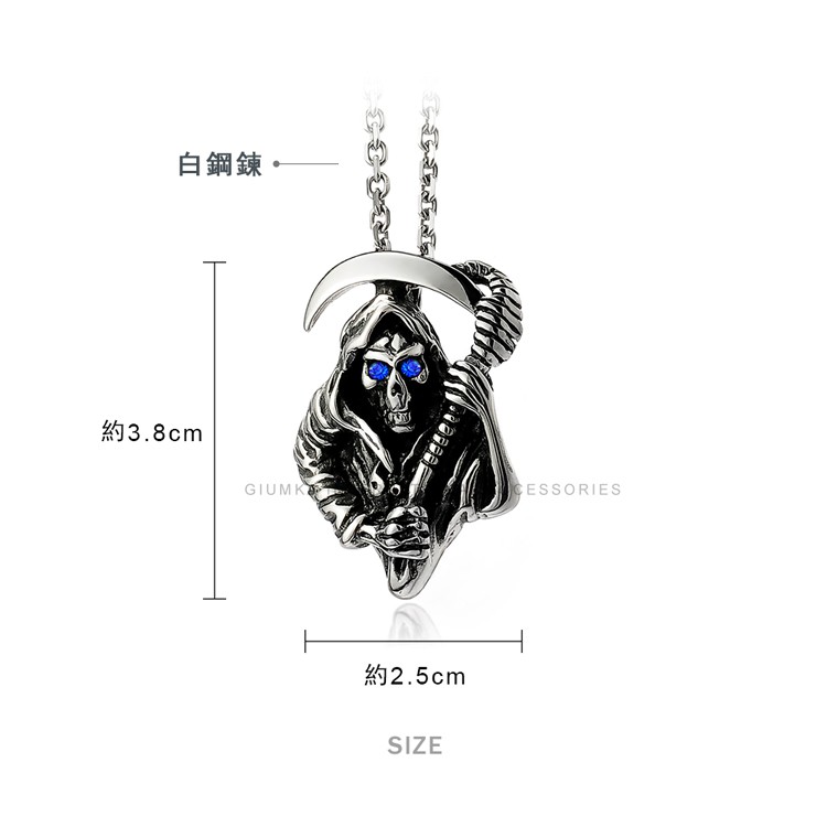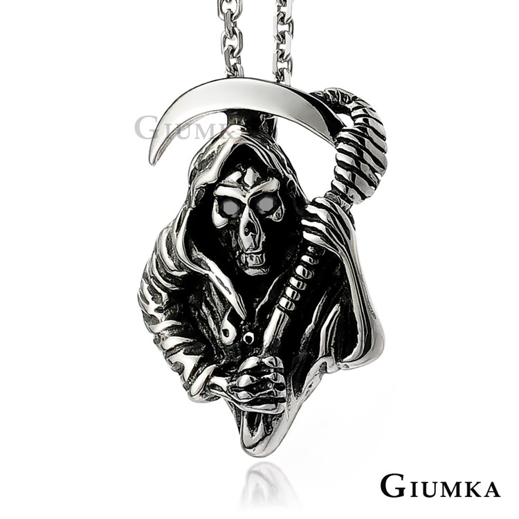 GIUMKA鈦鋼短鍊刻字推薦 黑暗使者連刀死神造型 黑鋯/藍鋯 單個價格 MN01398