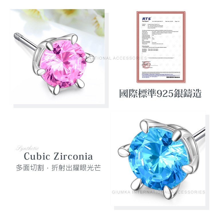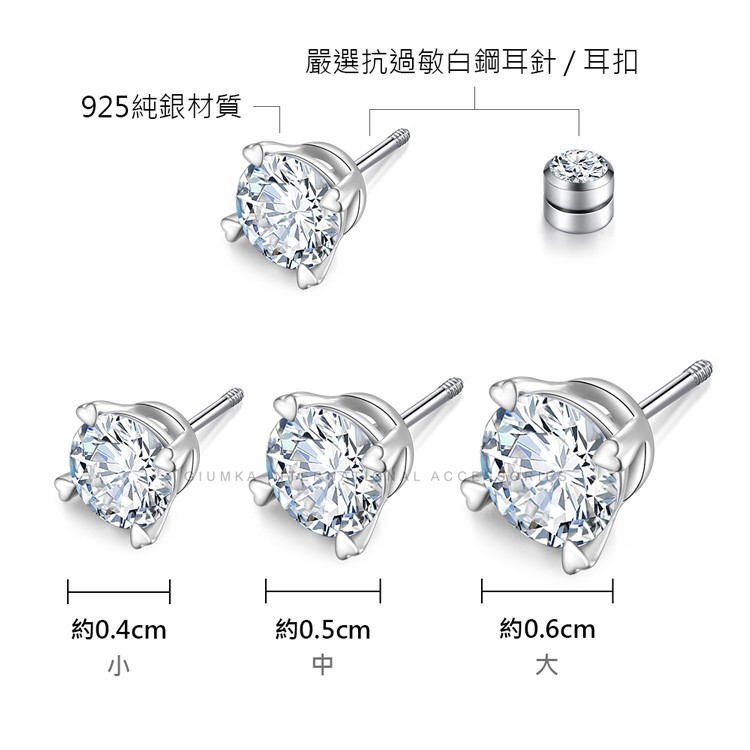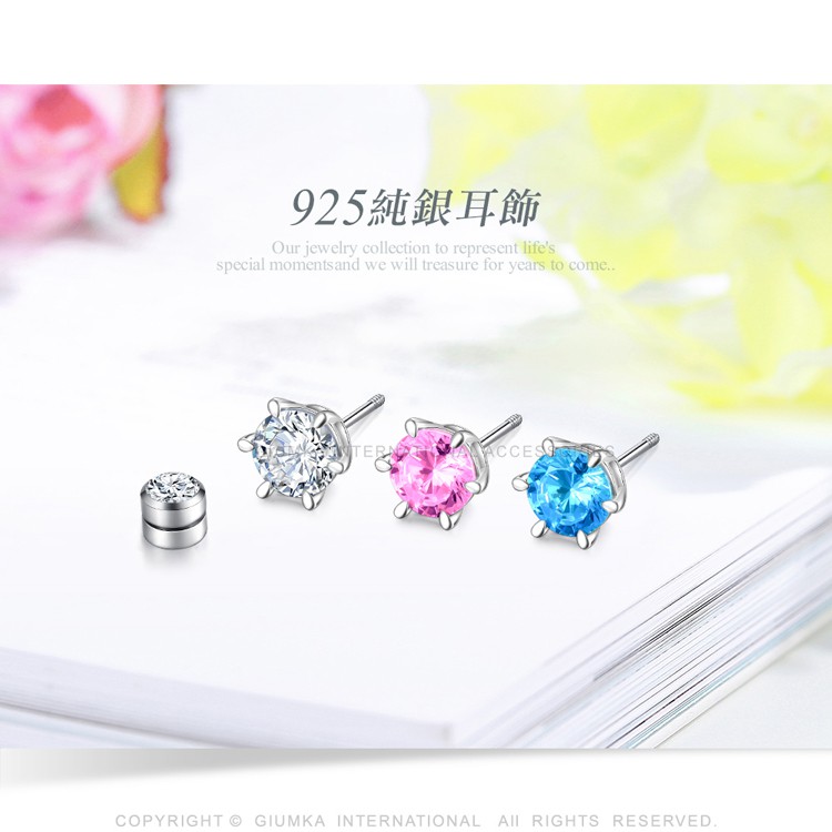 GIUMKA-925純銀耳環-後鎖針式/栓扣式-圓鑚愛心四爪-MFS08132