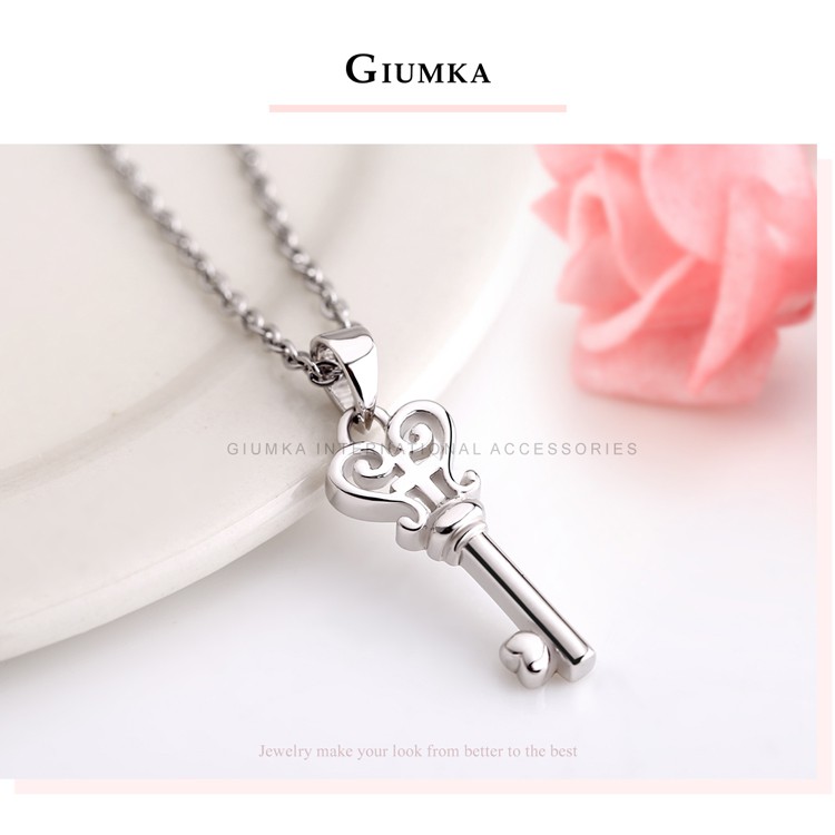 GIUMKA鎖骨鍊女短鍊925純銀吊墜 純銀項鍊刻字 心之鑰 NS09008