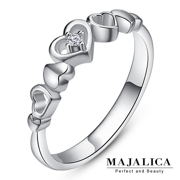 Majalica925純銀飾戒指女戒 浪漫心連心 925純銀飾尾戒 聖誕交換禮物 PR008