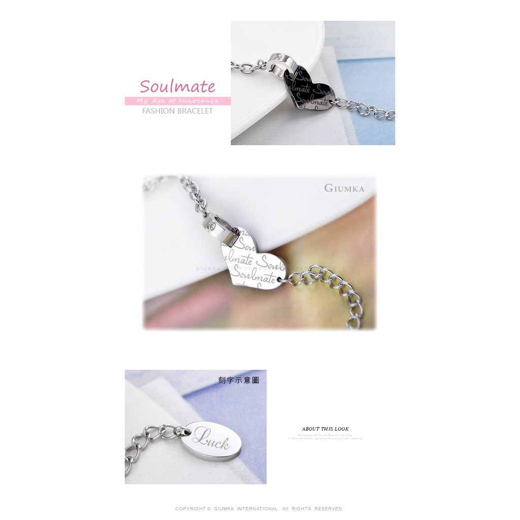 GIUMKA 愛心手鍊 雷射雕刻 白鋼飾品 MH05032 2款任選