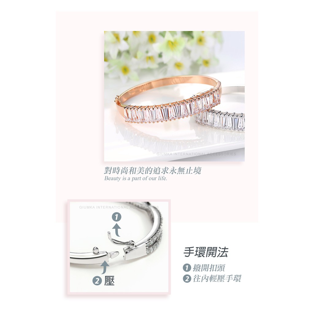 GIUMKA女生手環奢華造型 精鍍正白K MB07006 情人節送禮推薦 銀色/玫金色