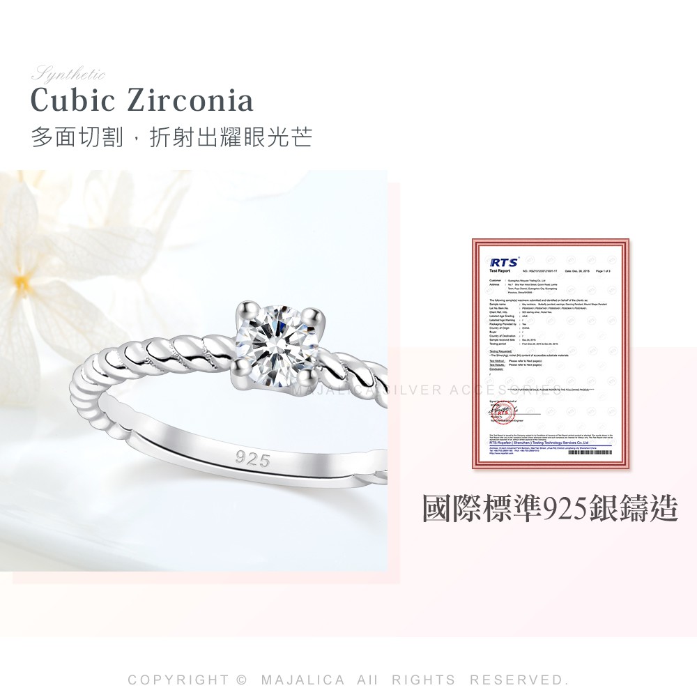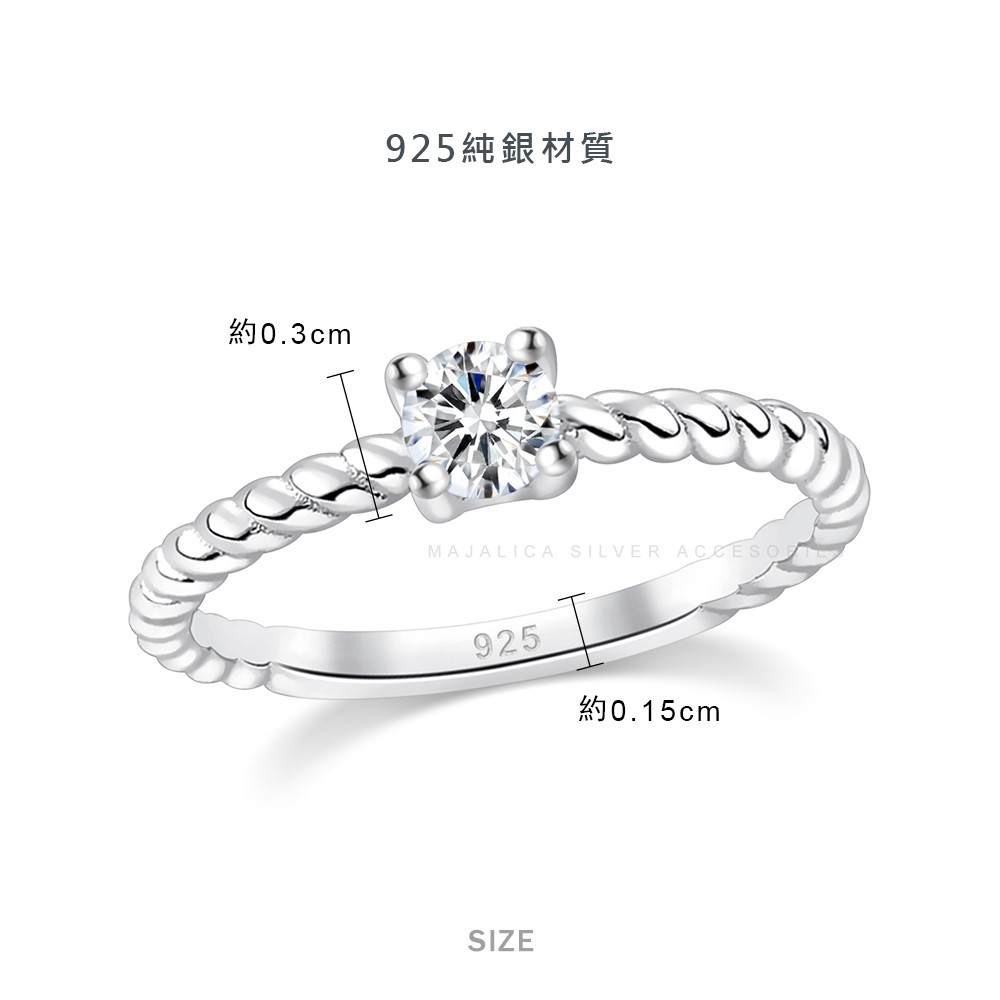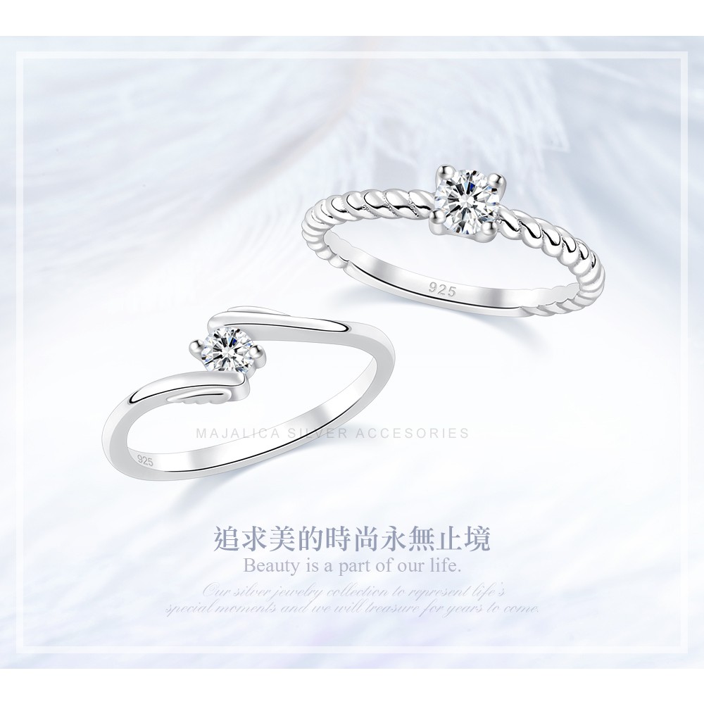 Majalica單鑽求婚女戒婚戒尾戒 幸福時刻聖誕交換禮物 PR9029戒子925純銀飾戒