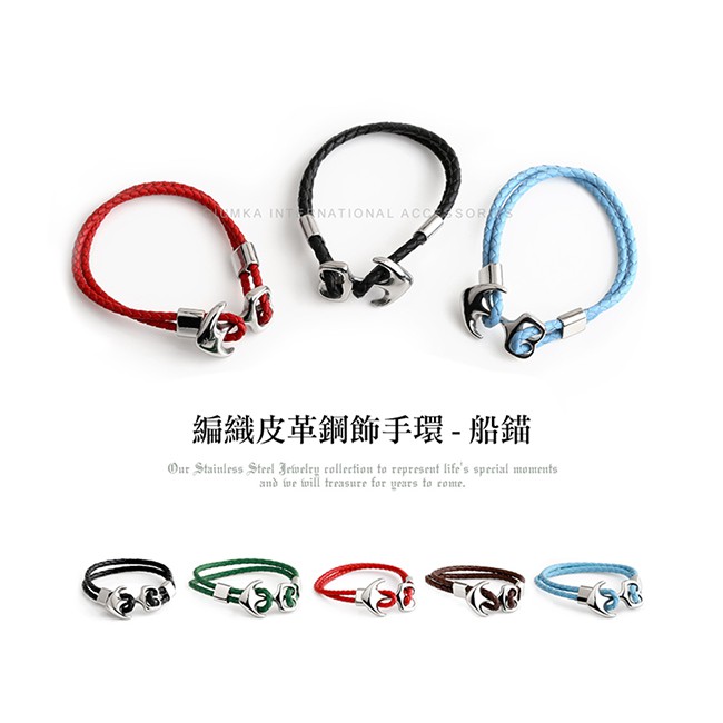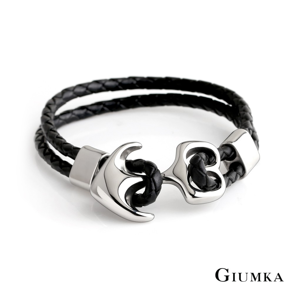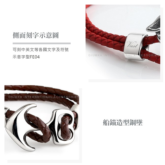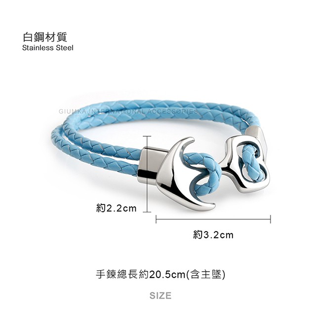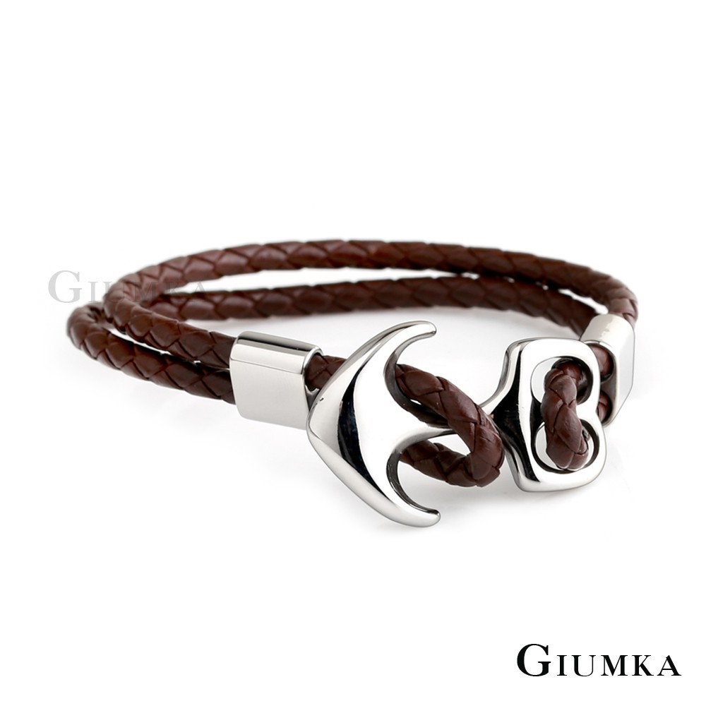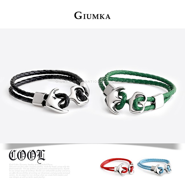 GIUMKA編織皮革手環手鍊 白鋼船錨造型MH08042 個性潮流款 單個價格