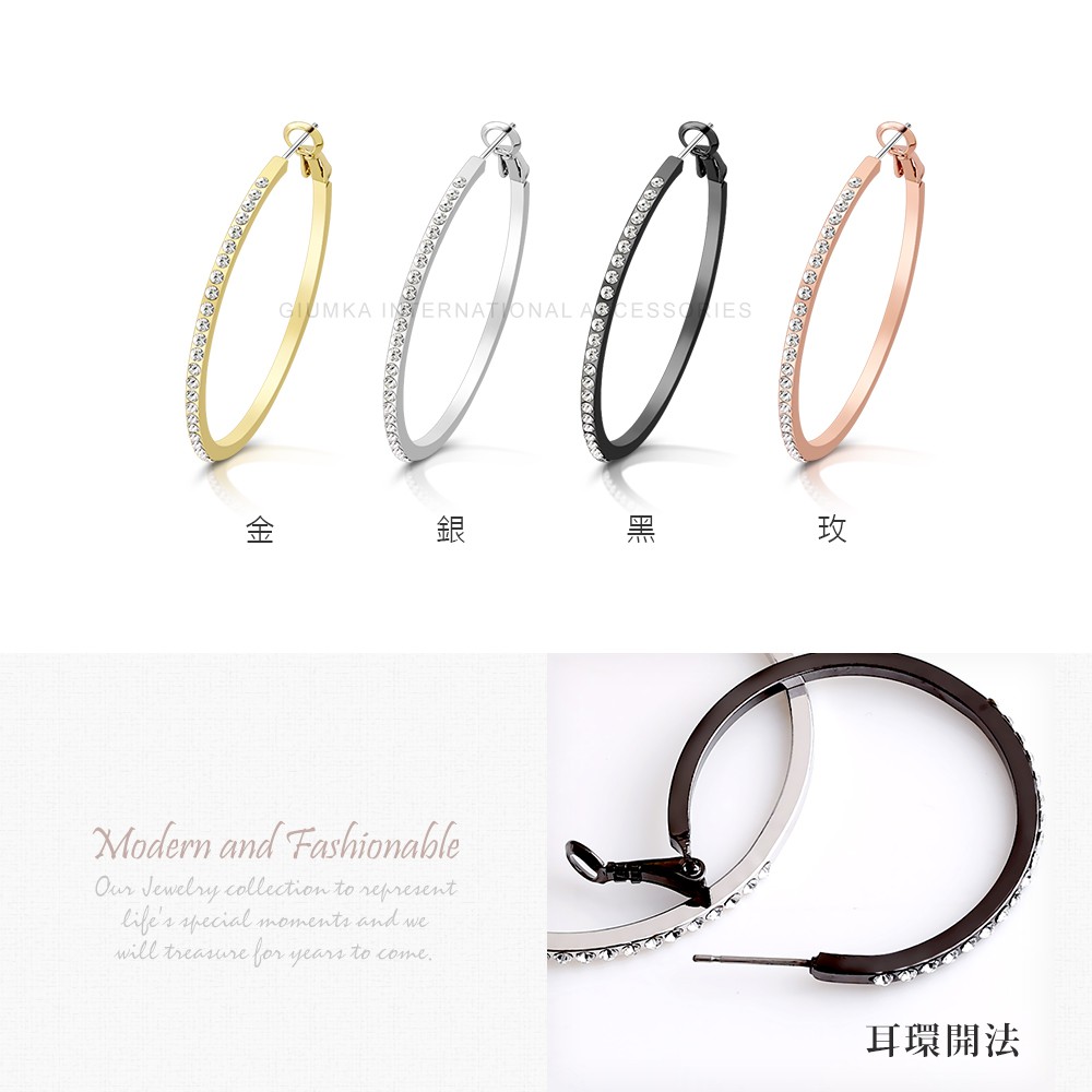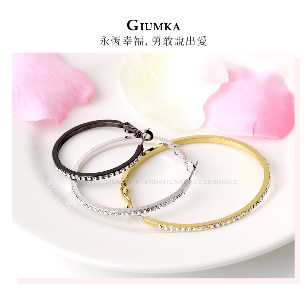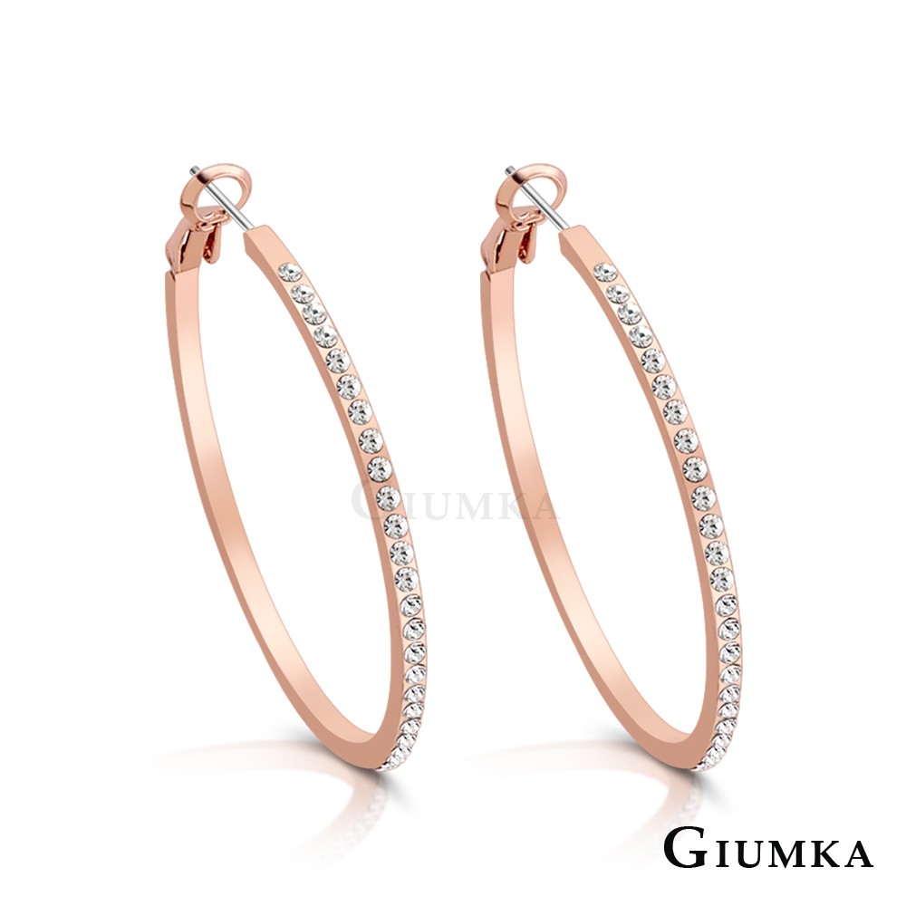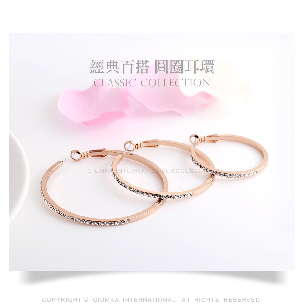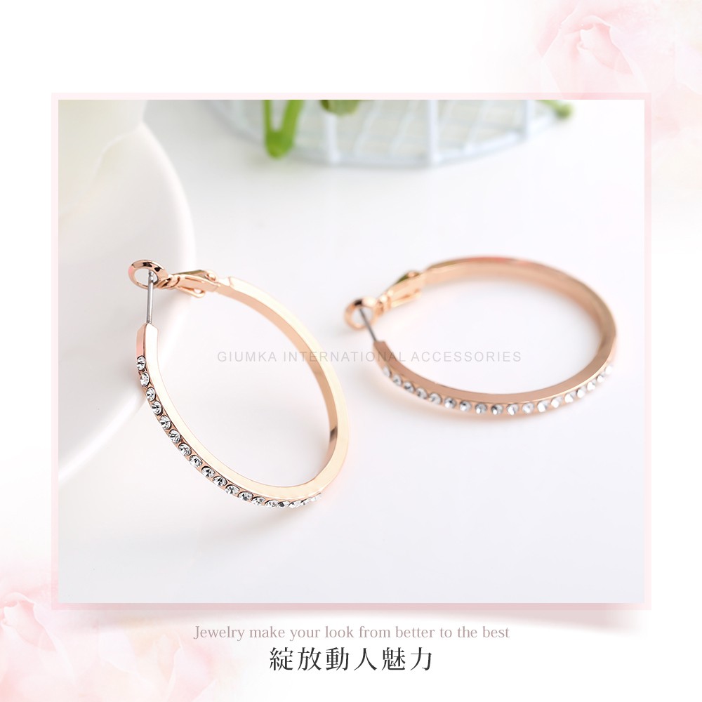 GIUMKA-圈圈耳環女款-半圈晶鑽-MF20018-精鍍玫瑰金-一對價格