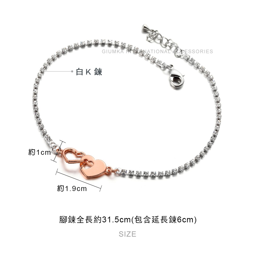 GIUMKA腳鍊女士腳鏈 心心相隨ML00006 精鍍正白K