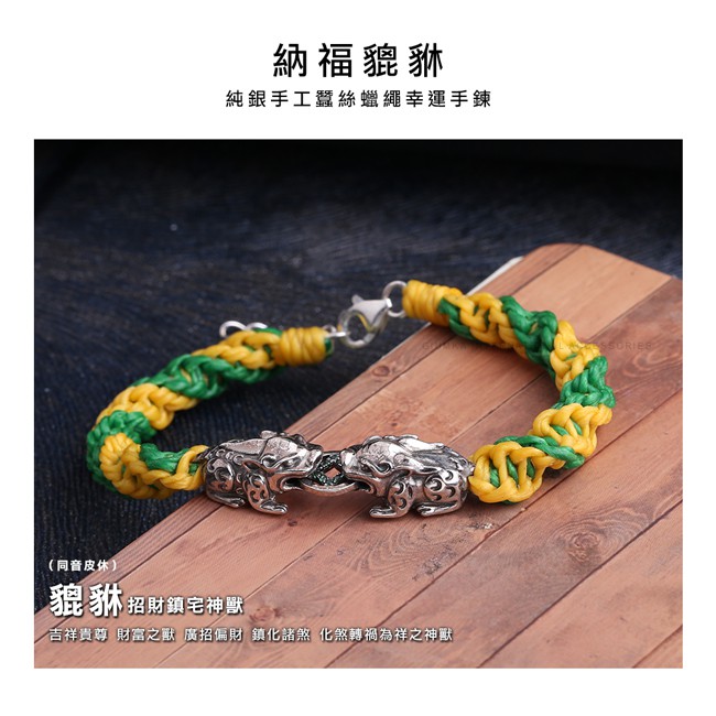 GIUMKA開運蠶絲蠟繩手鍊編織手繩925銀納福貔貅手鏈男女中性款 情人節生日禮物推薦 MHS05020