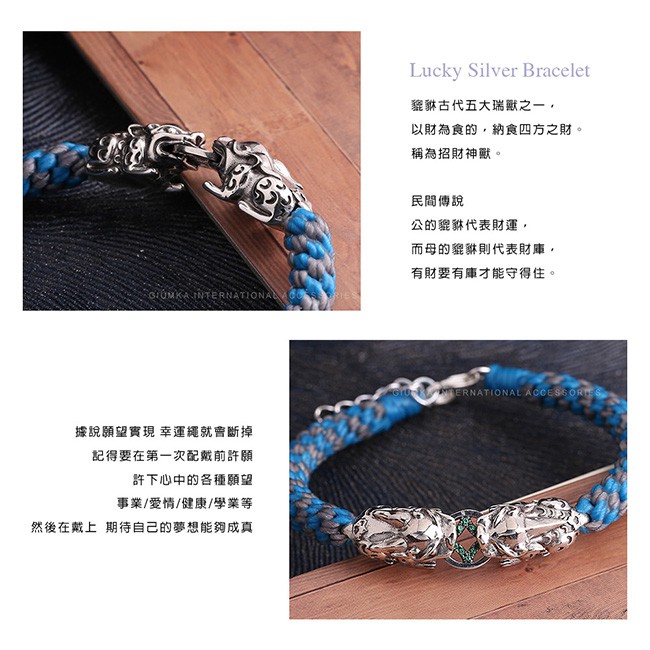 GIUMKA.編織手繩.925純銀貔貅.招財.MHS05021