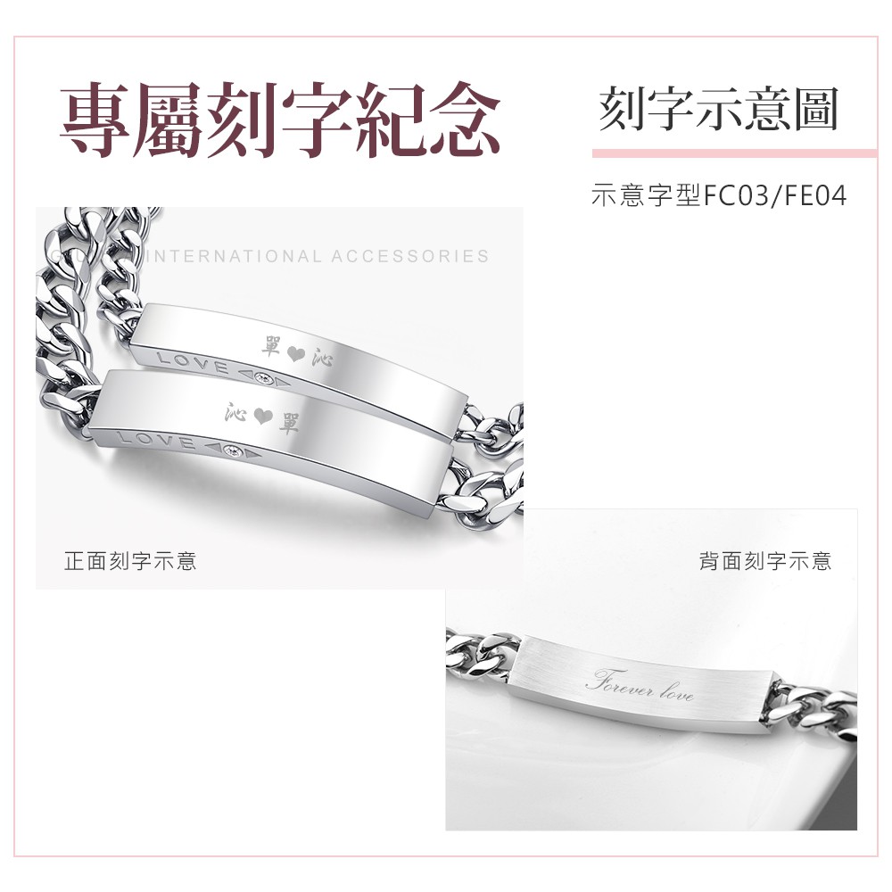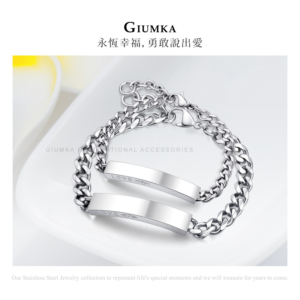 GIUMKA-情侶手鍊-刻字紀念-白鋼手鏈-牽手一生Love-MH20003-單個價格