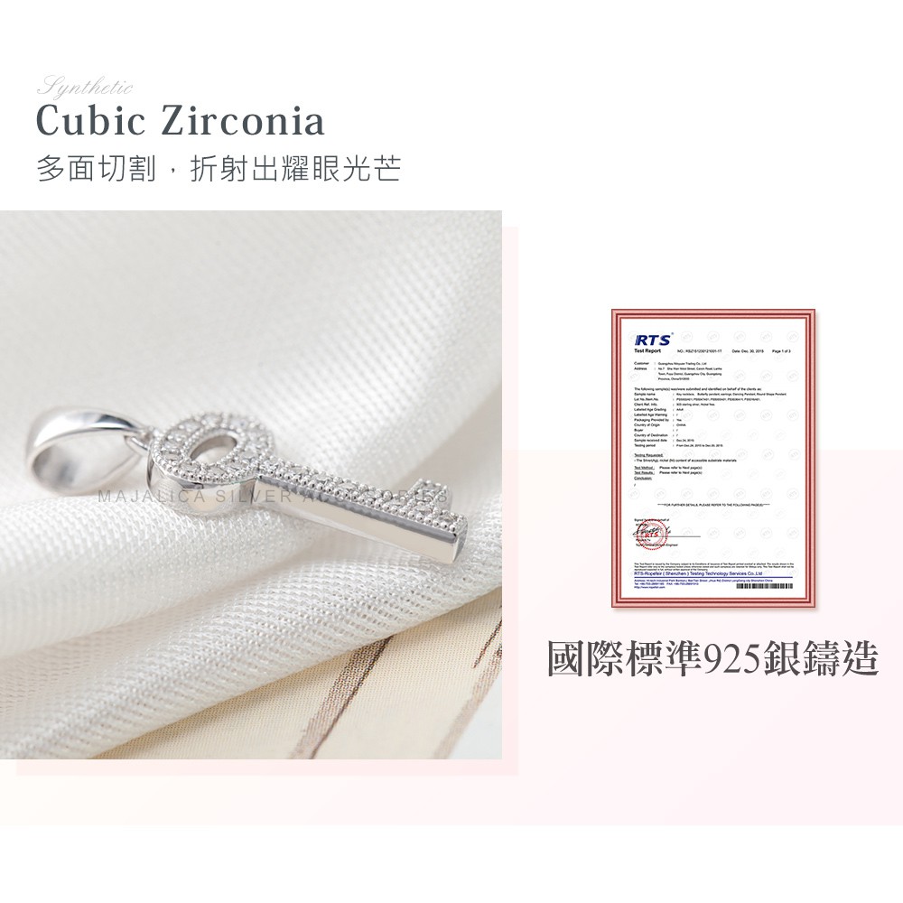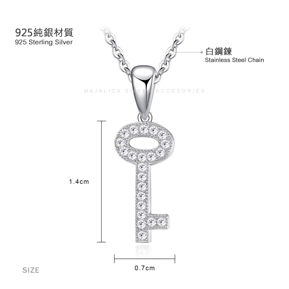 Majalica純銀吊飾項鍊女鍊 鑰匙PN5115鎖骨鍊密釘鑲