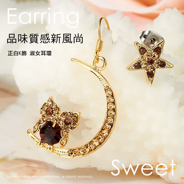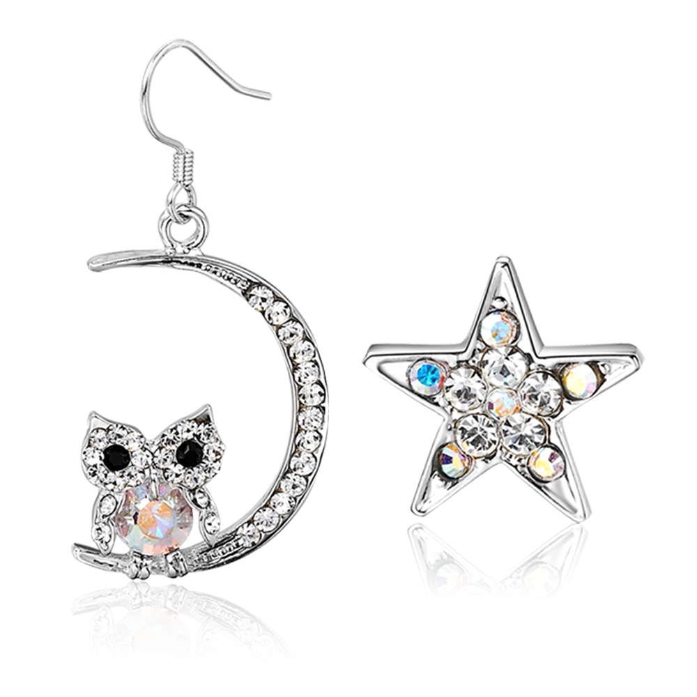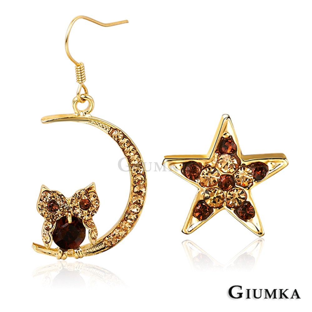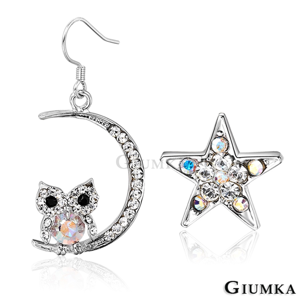 GIUMKA不對稱耳勾耳環 星月守護神貓頭鷹MF00574 精鍍正白K