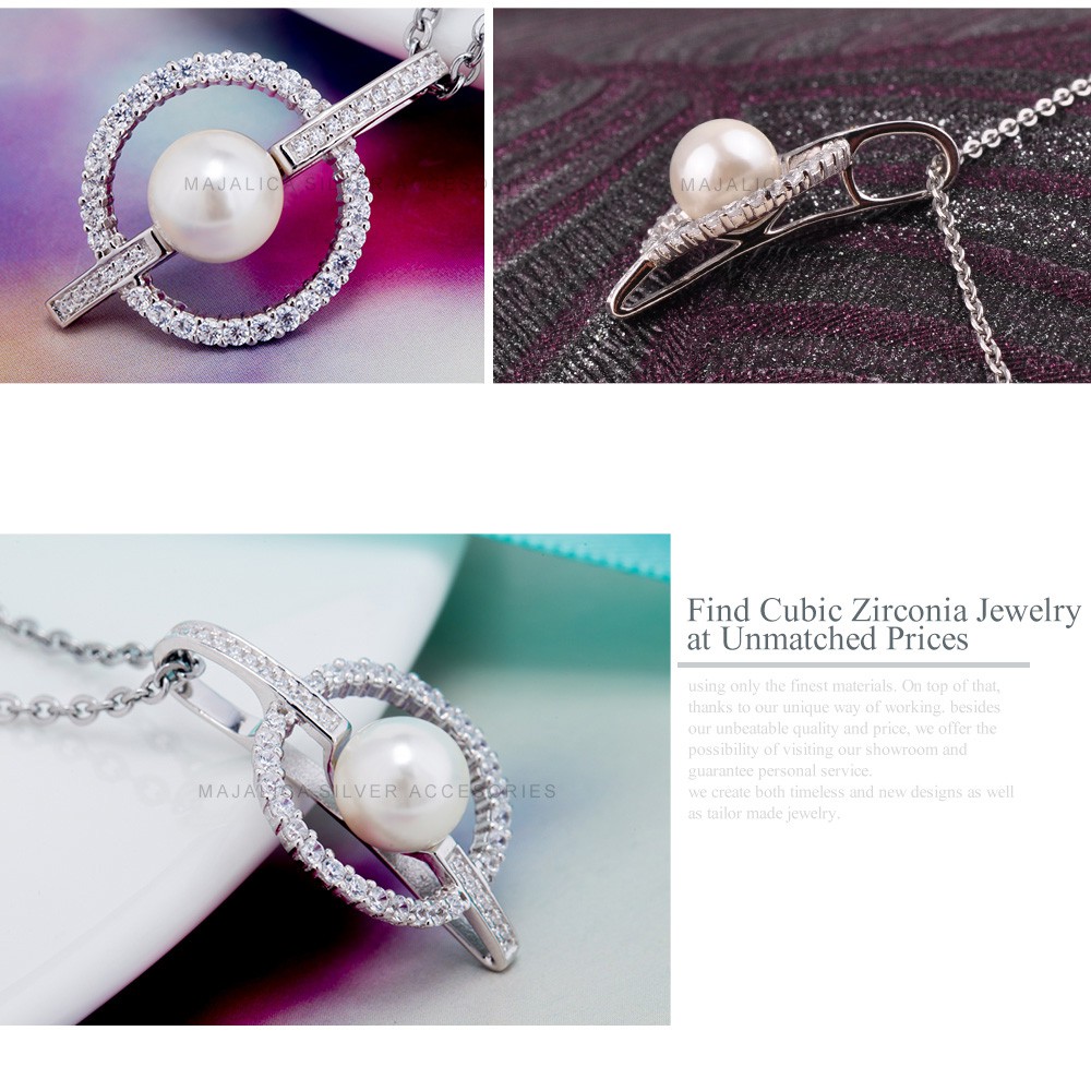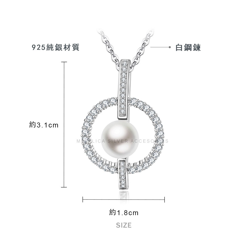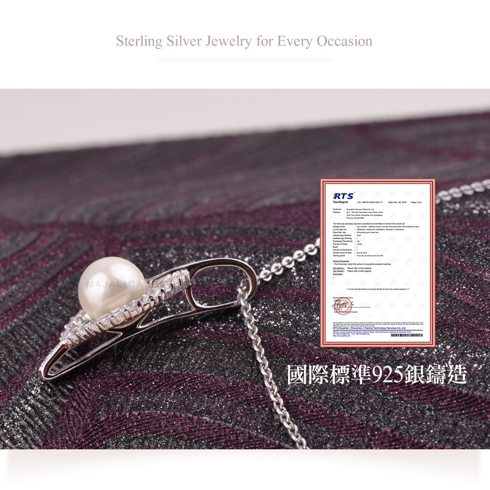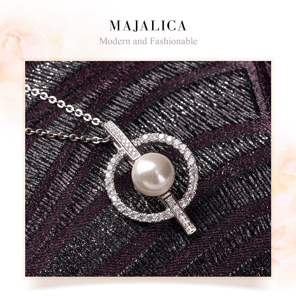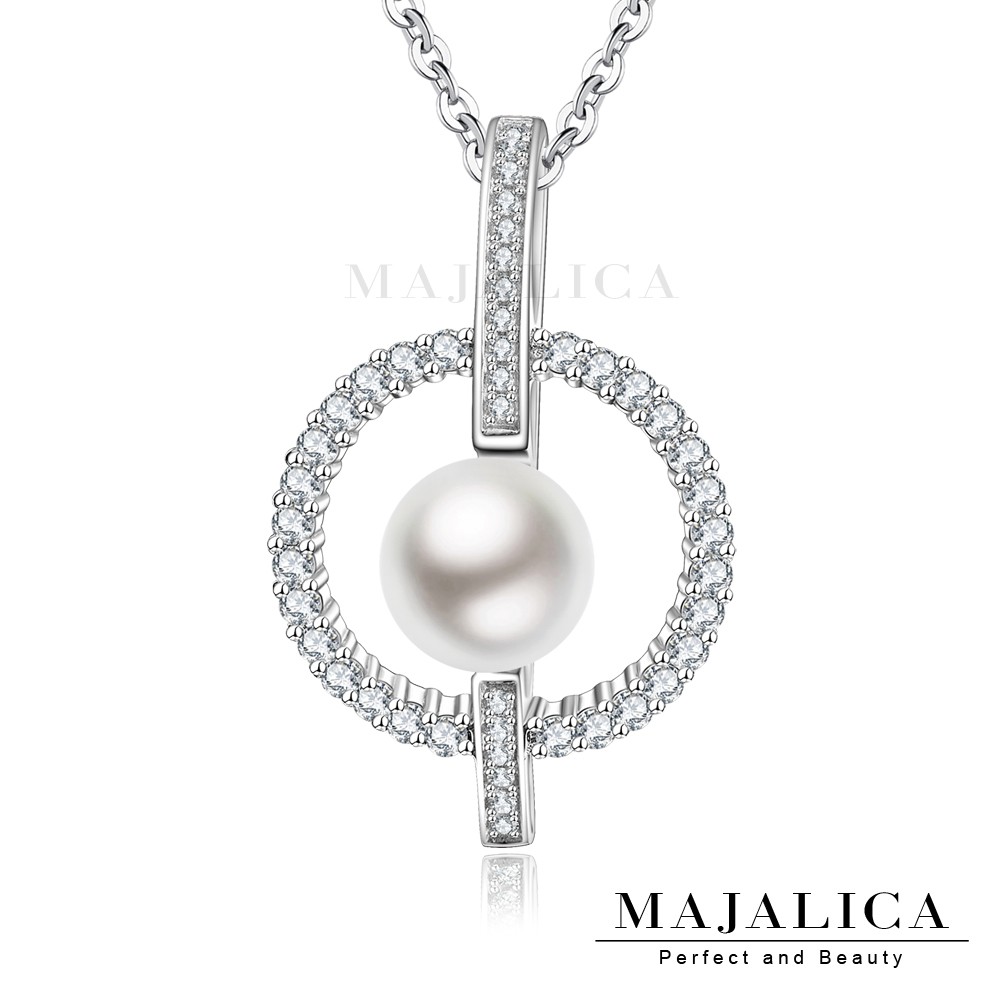 Majalica珍珠項鍊925純銀吊墜女鍊圓滿珍珠PN5135 密釘鑲