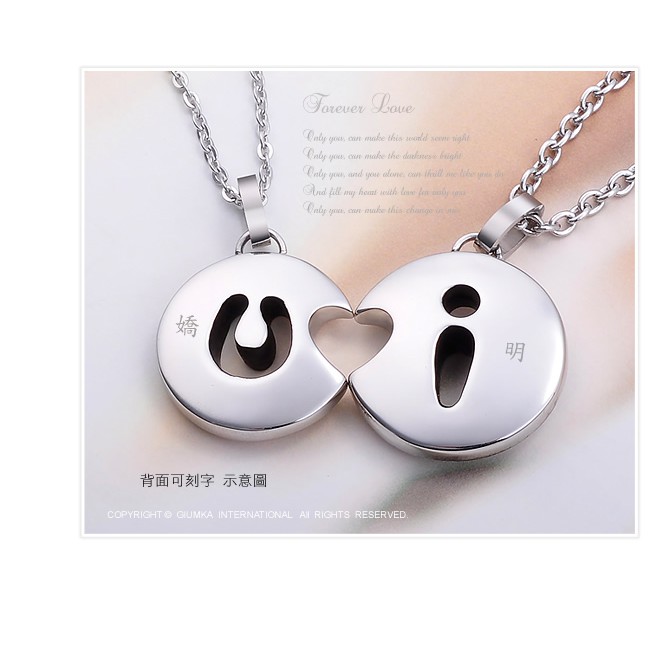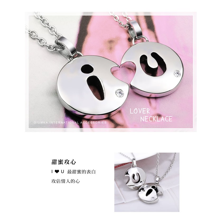 GIUMKA情侶項鍊甜蜜攻心愛心白鋼短鍊 男女情人對鍊 銀色 單個價格 MN03044