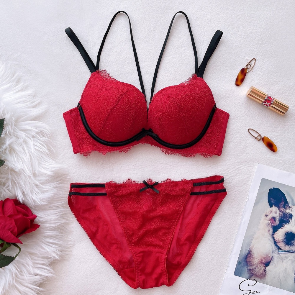 【Mini Queen】獨家 微辣米亞 單內衣 撞色交叉性感睫毛蕾絲W型鋼圈單內衣(酒紅65B-95F)交叉內衣性感內衣