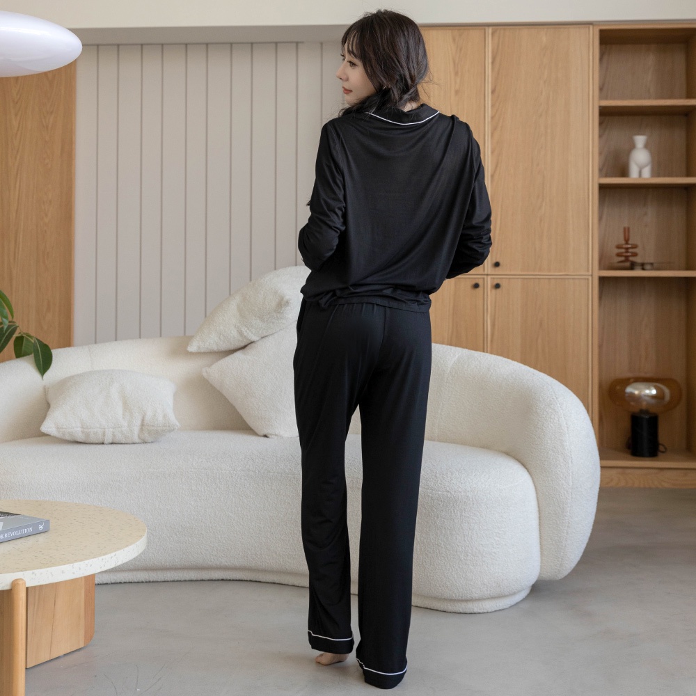 Mini Queen 睡衣(黑色) 幸福奇蹟 (長袖上衣+長褲)極致親膚滑順莫代爾長袖褲裝睡衣二件組