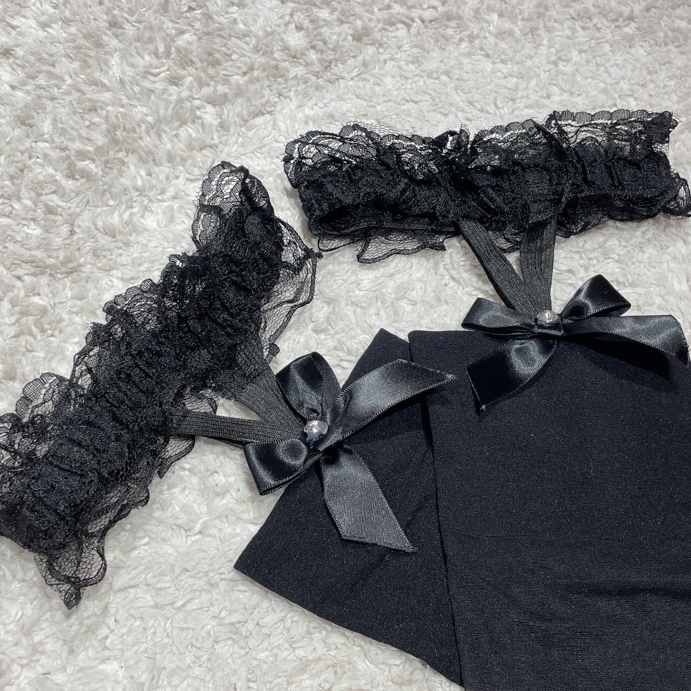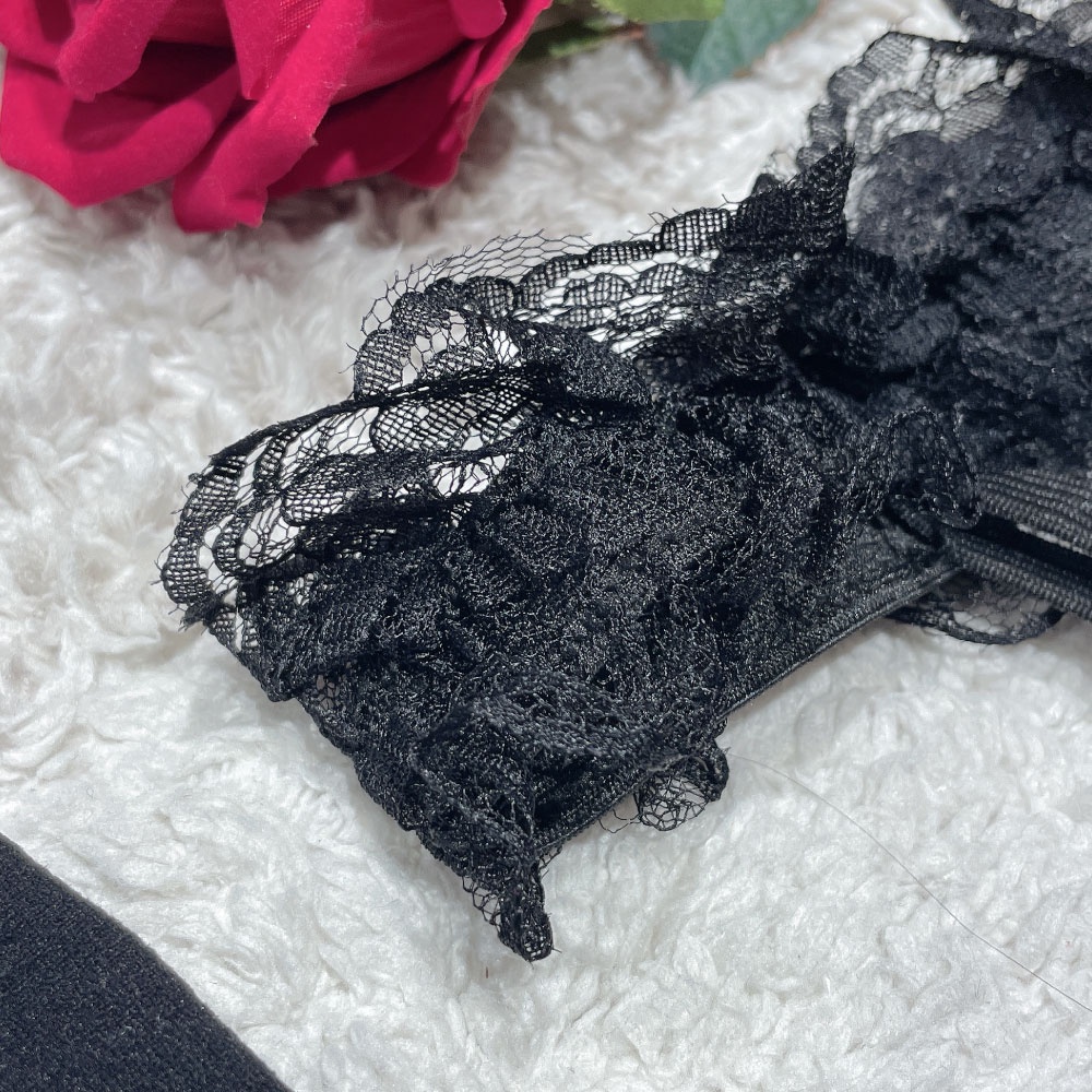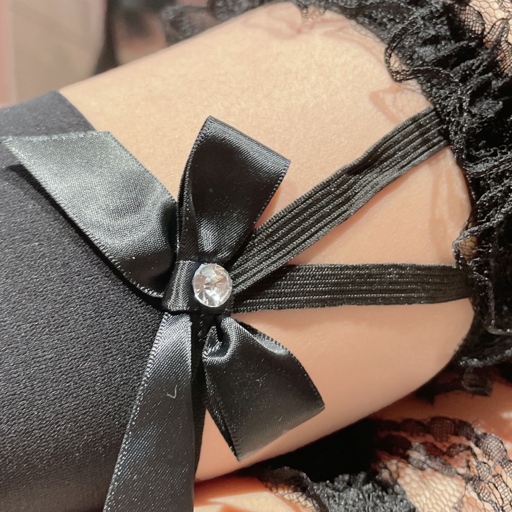 【Mini Queen】一拍即合 立體花邊蕾絲蝴蝶結大腿絲襪 (黑色)