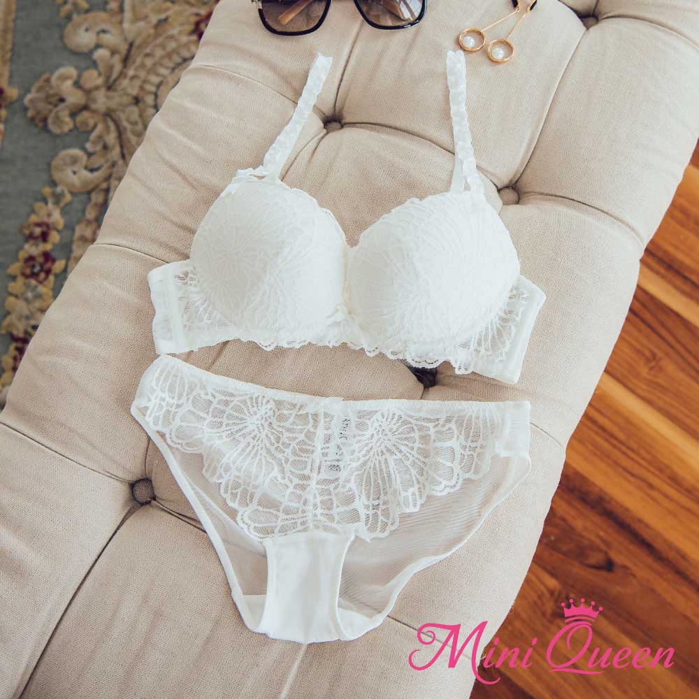 Mini Queen 蕾絲內衣(白80-85ABC) 曖昧對流層二代 Push Up法式蕾絲集中托高成套內衣