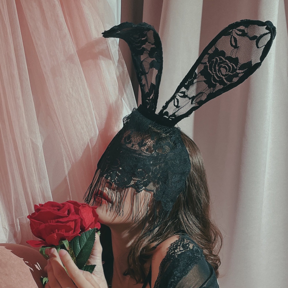 MiniQueen髮箍(黑)邦妮兔兔-神祕性感細緻流蘇蕾絲兔耳髮箍